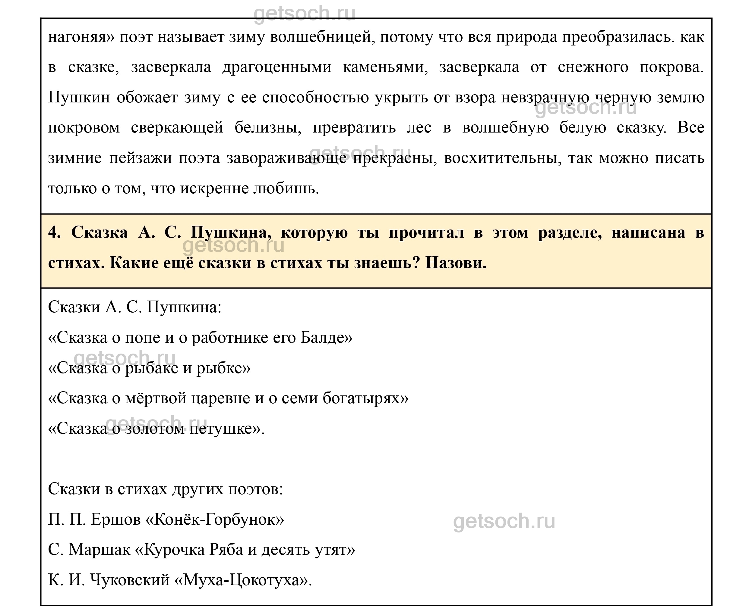 4. Сказка А. С. Пушкина, которую ты прочитал в этом разделе, написана в стихах. Какие ещё сказки в стихах ты знаешь? Назови.