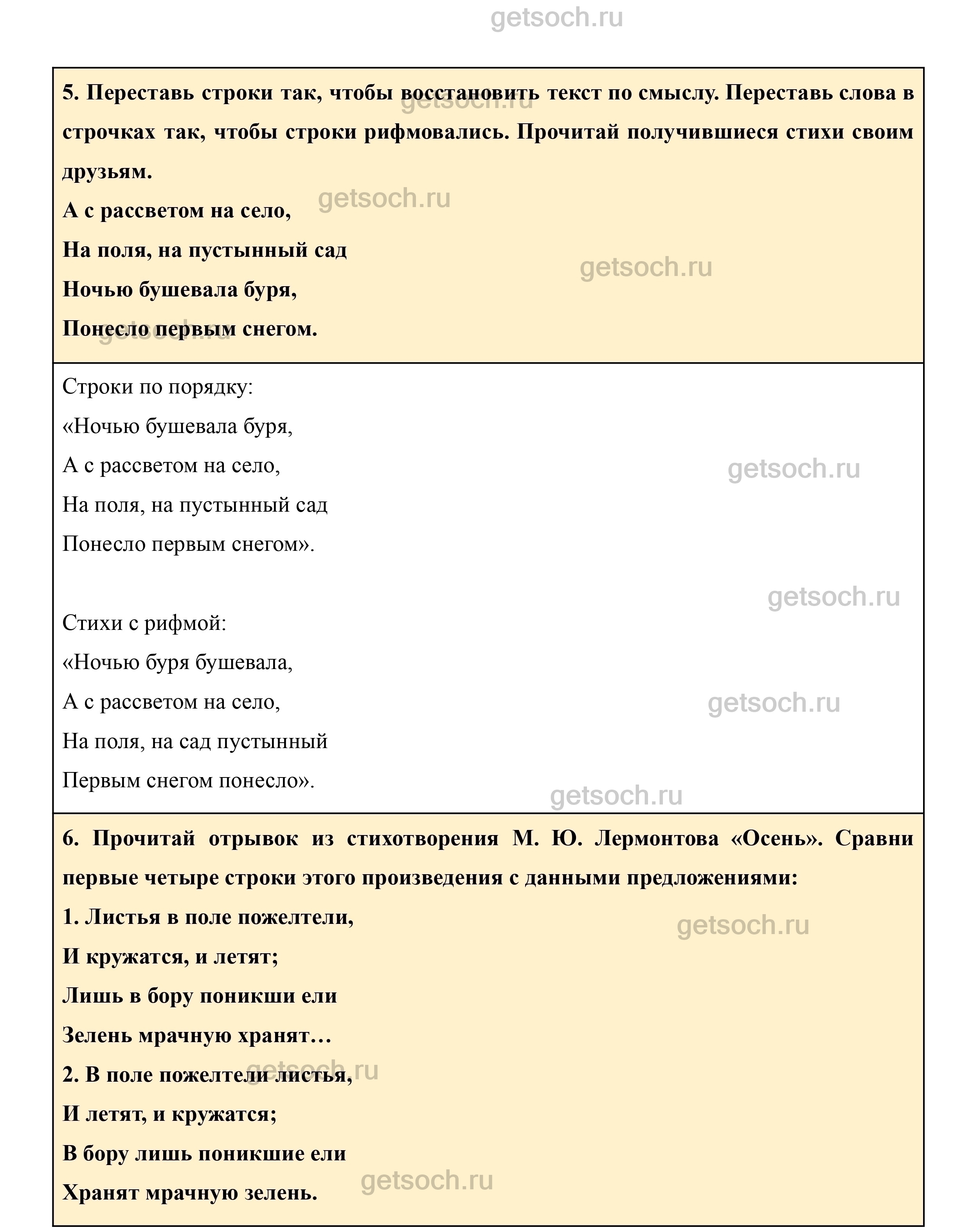 6. Прочитай отрывок из стихотворения М. Ю. Лермонтова «Осень». Сравни первые четыре строки этого произведения с данными предложениями: