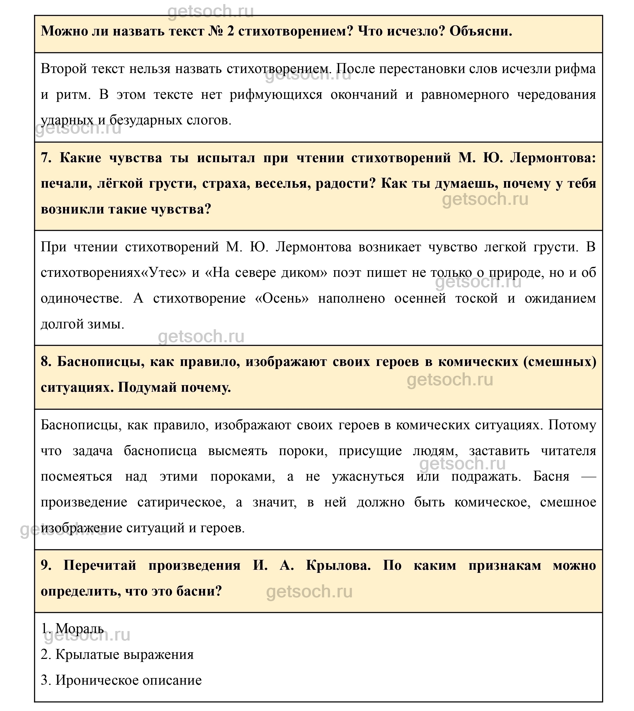 9. Перечитай произведения И. А. Крылова. По каким признакам можно определить, что это басни?