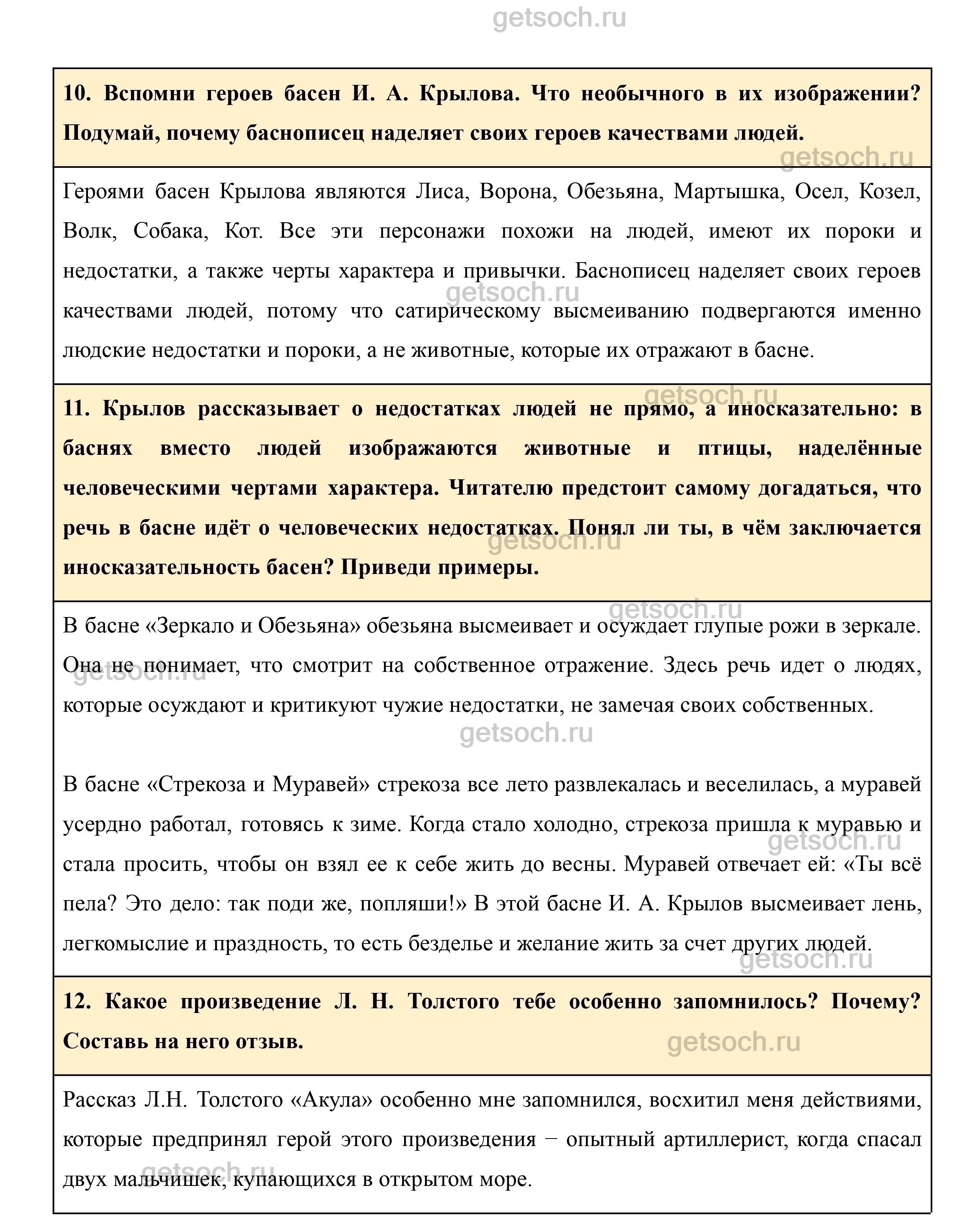 10. Вспомни героев басен И. А. Крылова. Что необычного в их изображении? Подумай, почему баснописец наделяет своих героев качествами людей.