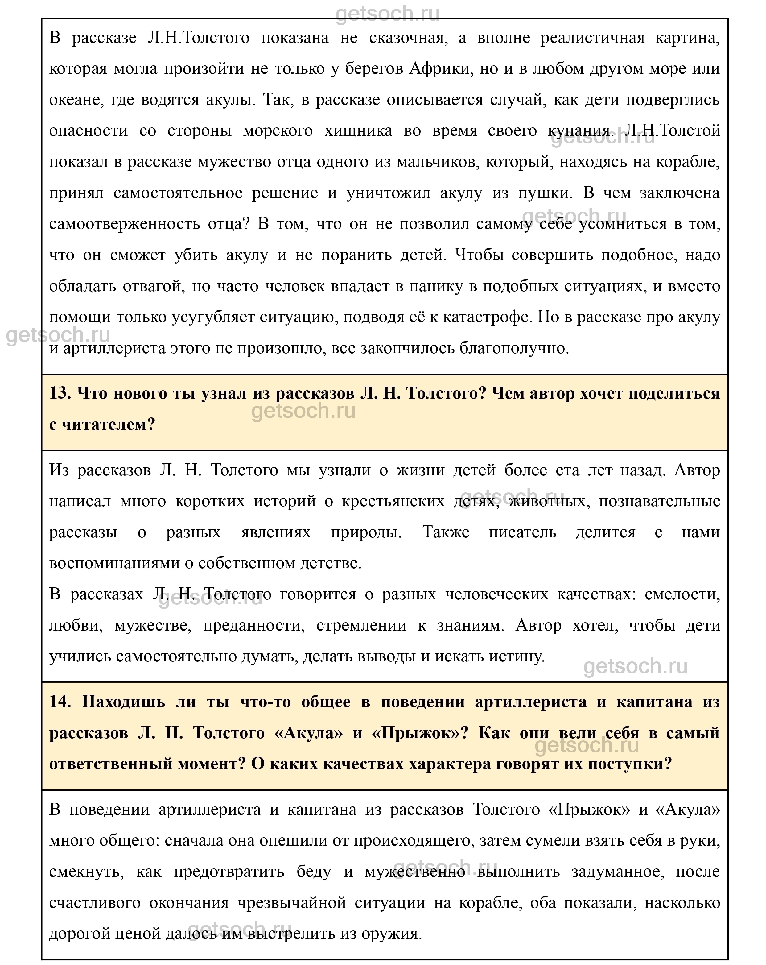 14. Находишь ли ты что-то общее в поведении артиллериста и капитана из рассказов Л. Н. Толстого «Aкула» и «Прыжок»? Как они вели себя в самый ответственный момент? О каких качествах характера говорят их поступки?