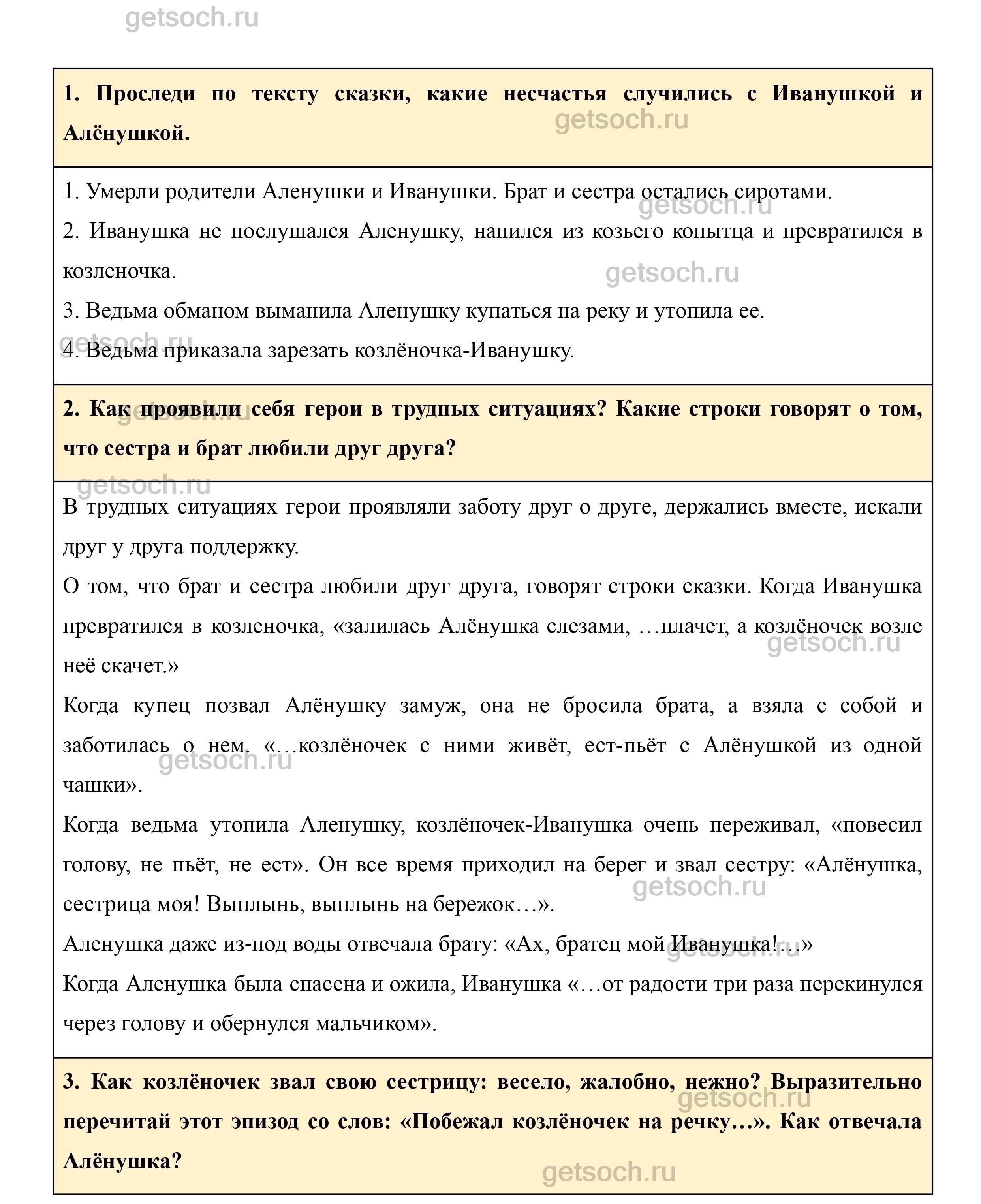 3. Как козлёночек звал свою сестрицу: весело, жалобно, нежно? Выразительно перечитай этот эпизод со слов: