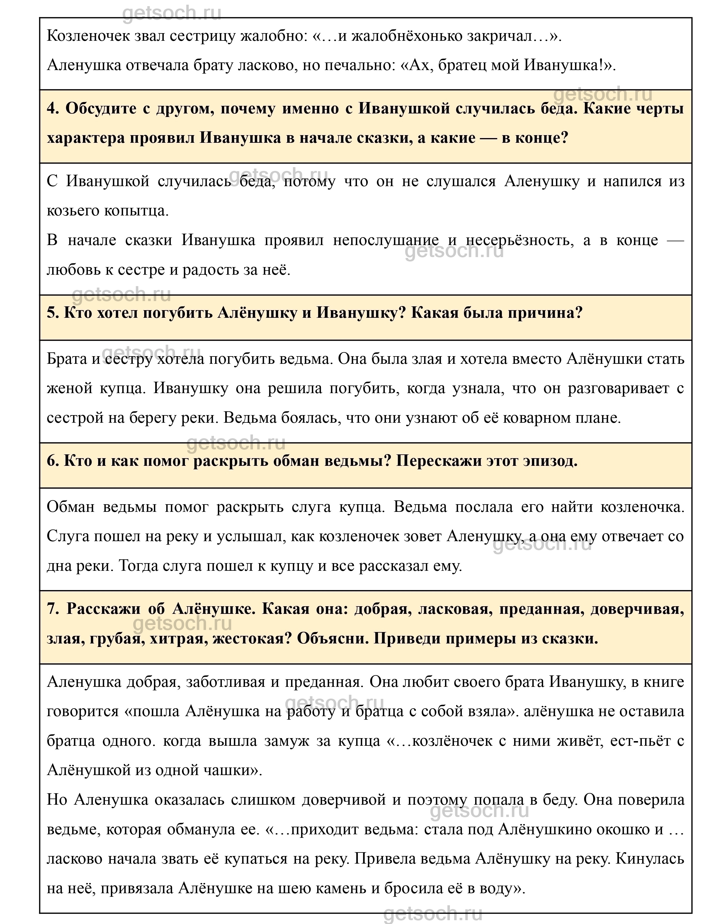 4. Обсудите с другом, почему именно с Иванушкoй случилась беда. Какие черты характера проявил Иванушка в начале сказки, а какие — в конце?