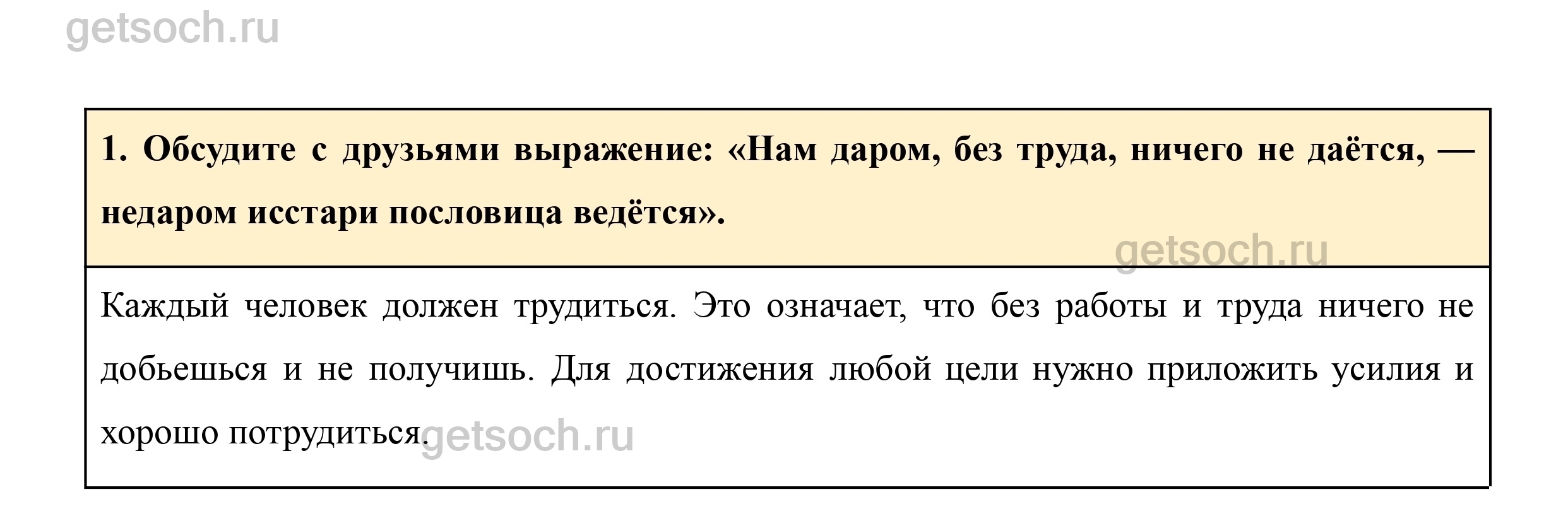 1. Обсудите с друзьями выражение: «Нам даром, без труда, ничего не даётся, — недаром исстари пословица ведётся».