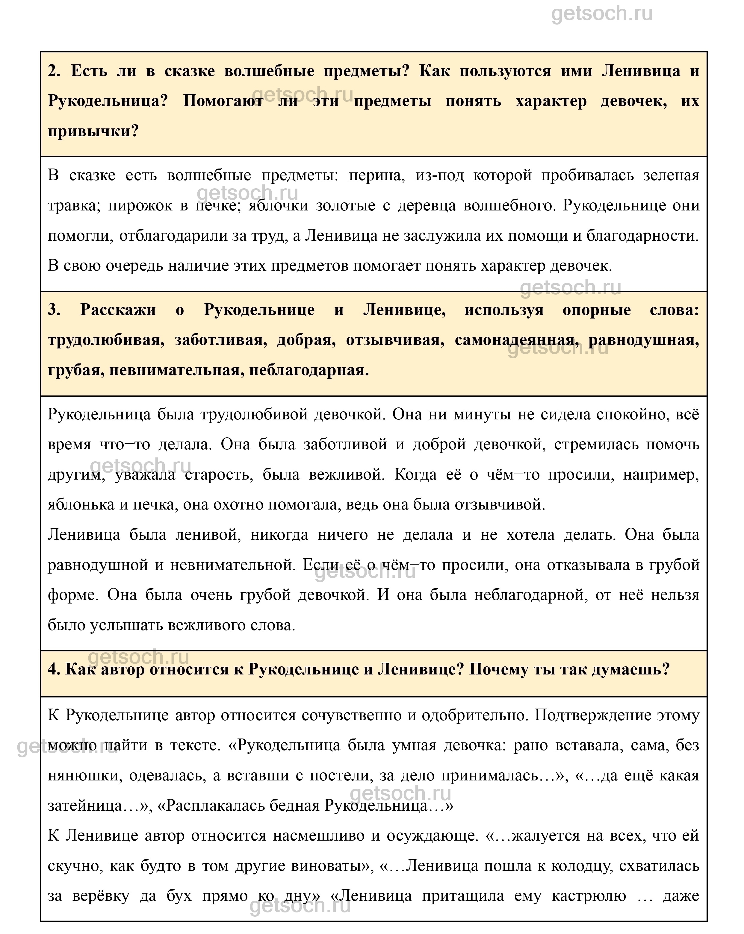 3. Расскажи о Рукодельнице и Ленивице, используя опорные слова: трудолюбивая, заботливая, добрая, отзывчивая, самонадеянная, равнодушная, грубая, невнимательная, неблагодарная.