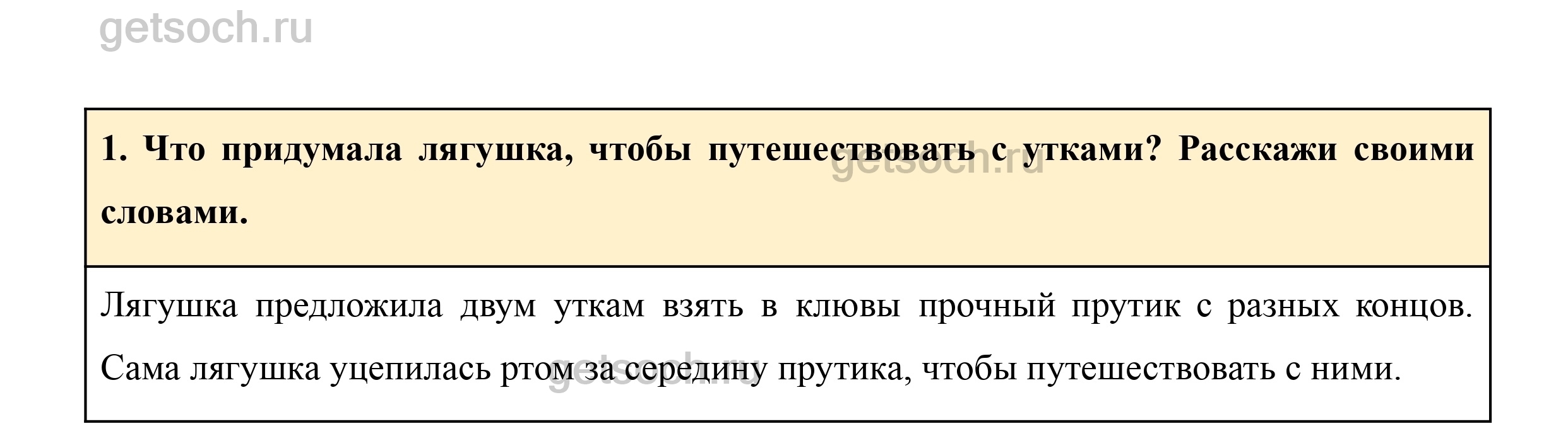 1. Что придумала лягушка, чтобы путешествовать с утками? Расскажи своими словами.