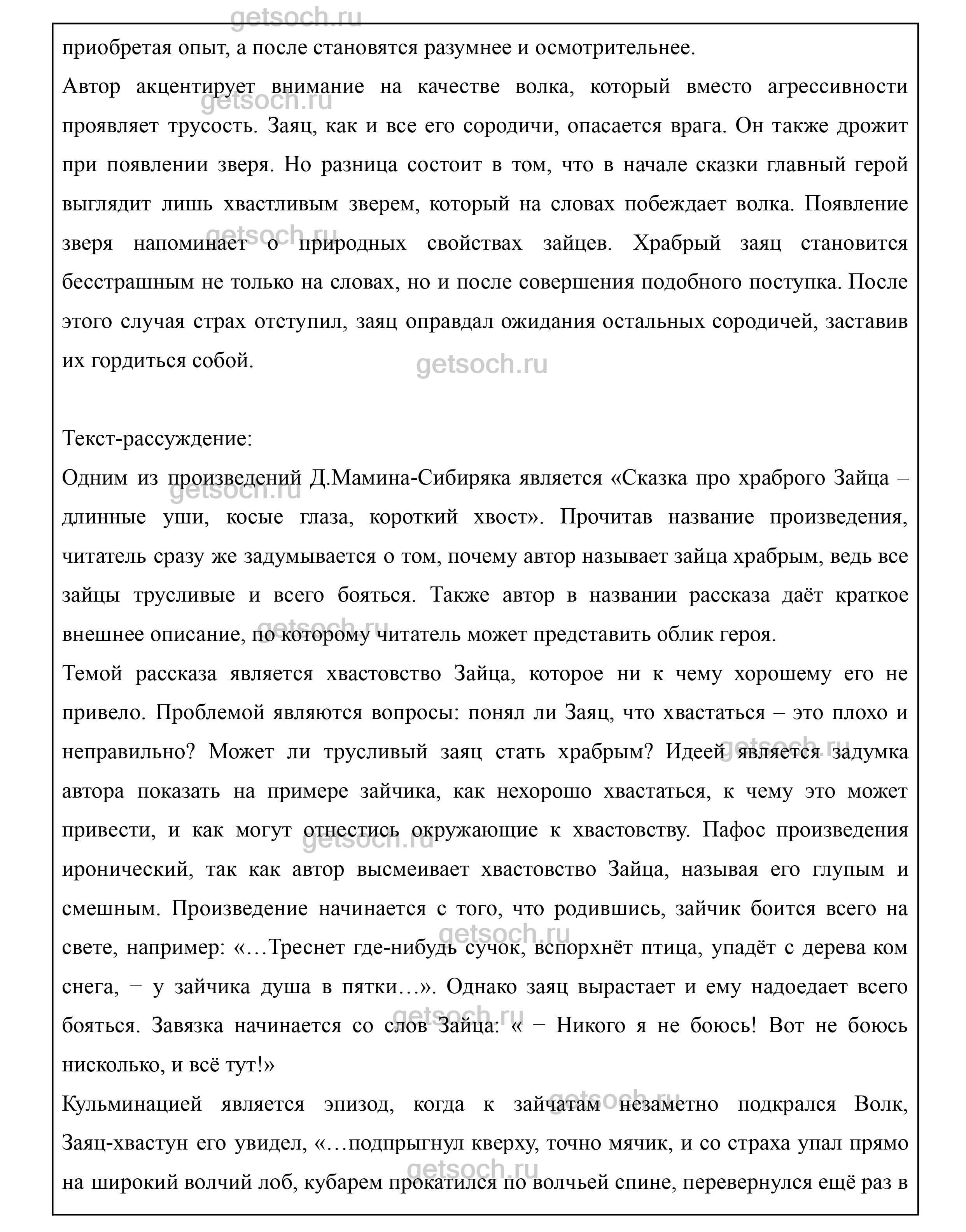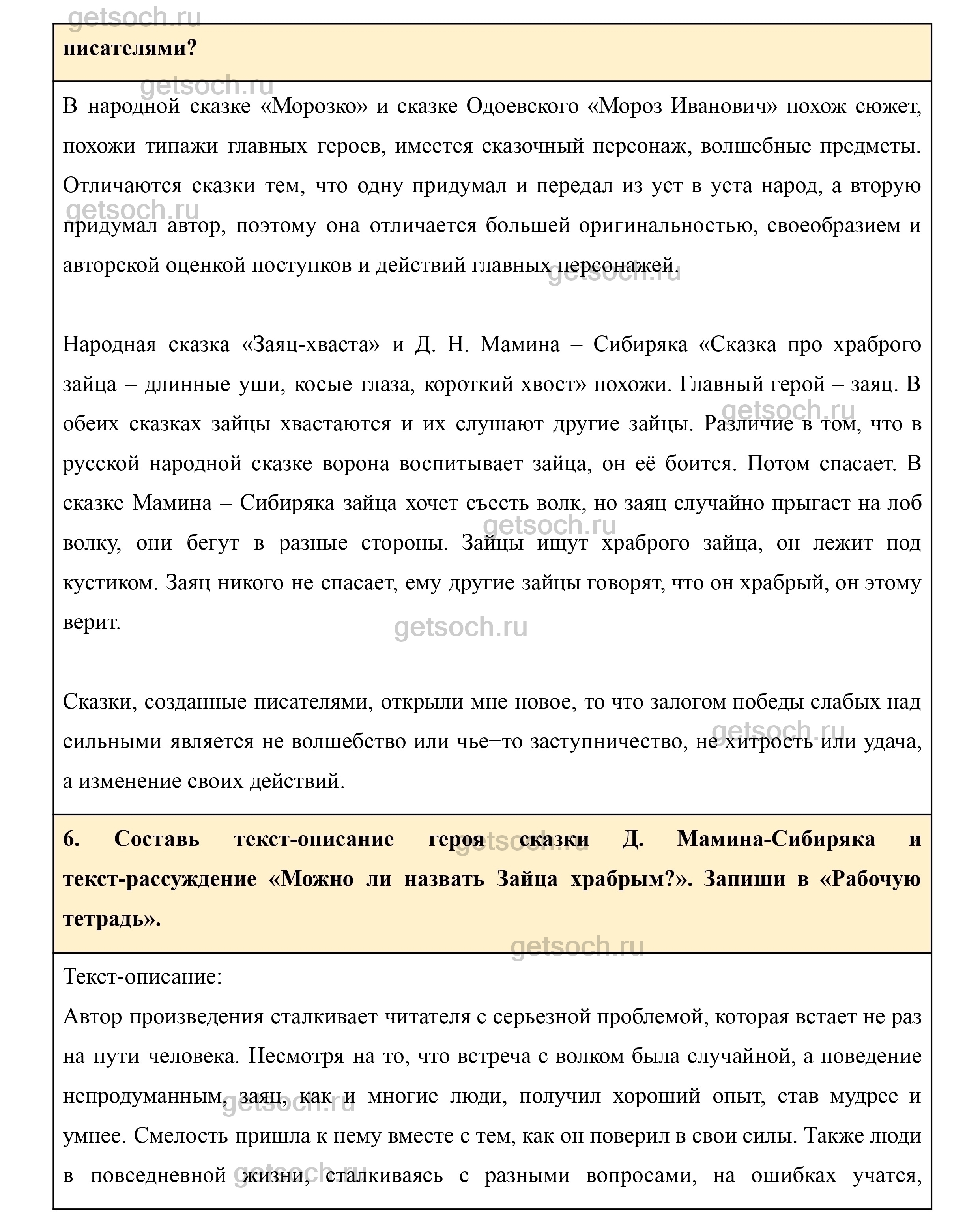 6. Составь текст-описание героя сказки Д. Мамина-Сибиряка и текст-рассуждение «Можно ли назвать Зайца храбрым?». Запиши в «Рабочую тетрадь».