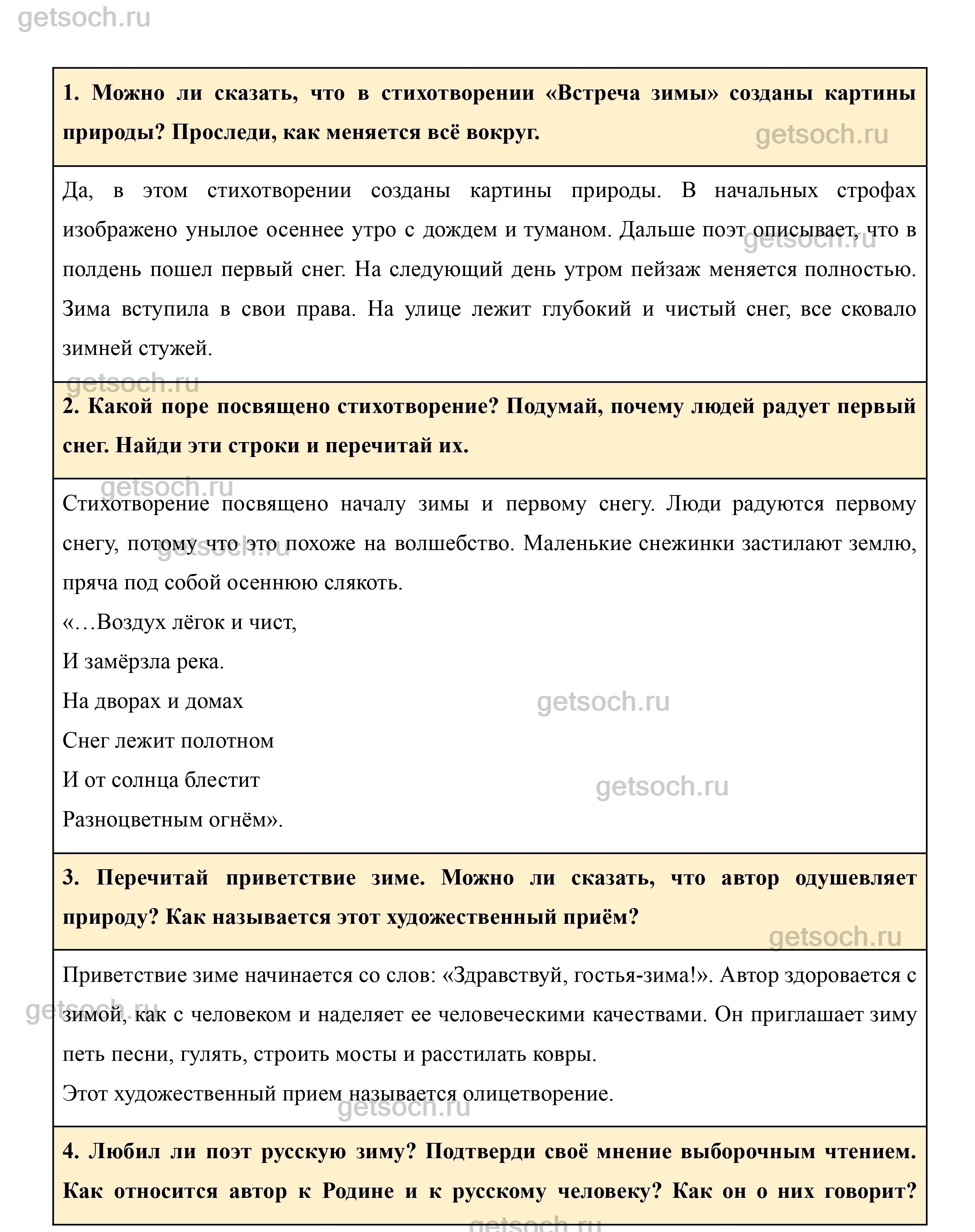 1. Можно ли сказать, что в стихотворении «Встреча зимы» созданы картины природы? Проследи, как меняется всё вокруг.