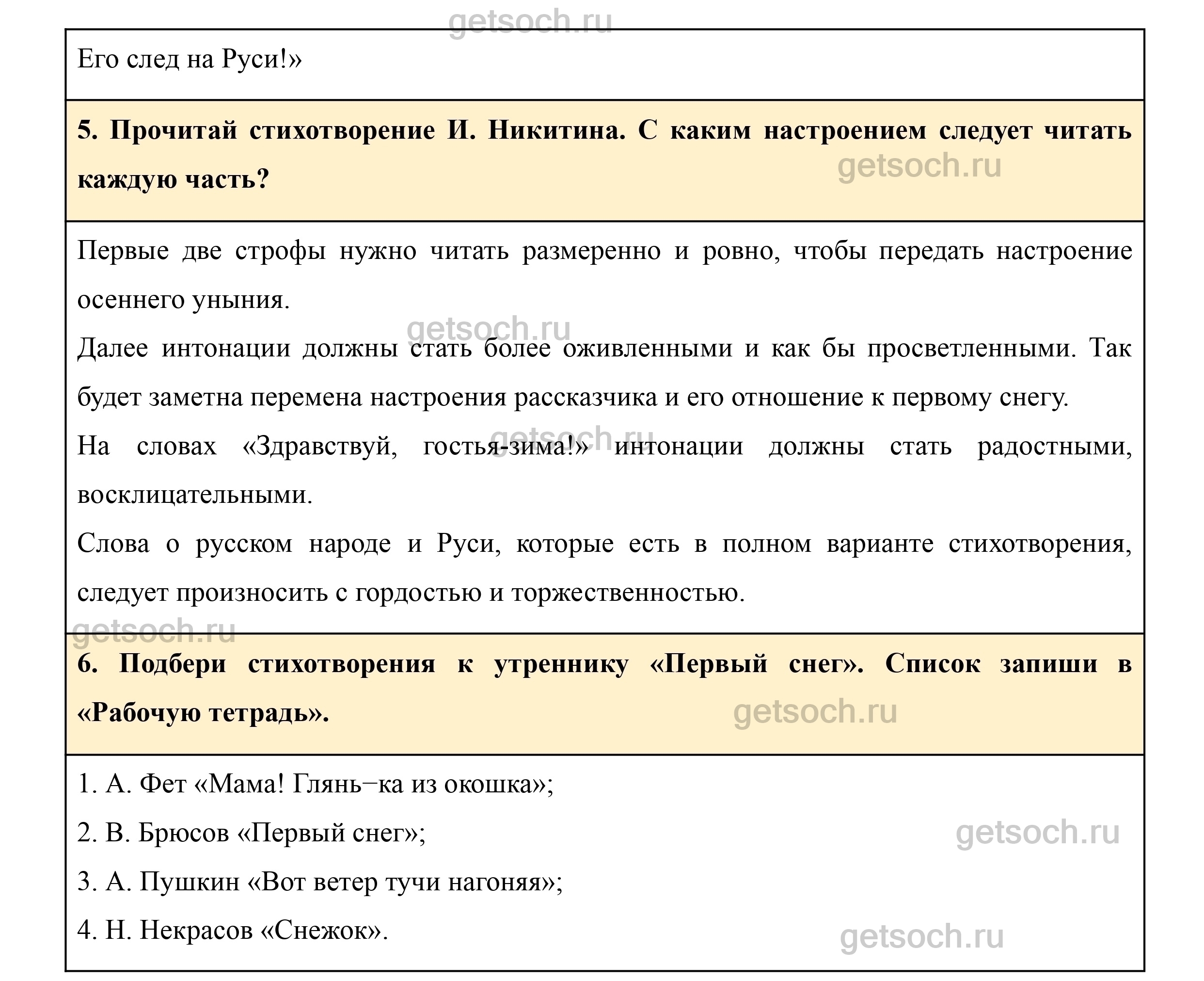 5. Прочитай стихотворение И. Никитина. С каким настроением следует читать каждую часть?