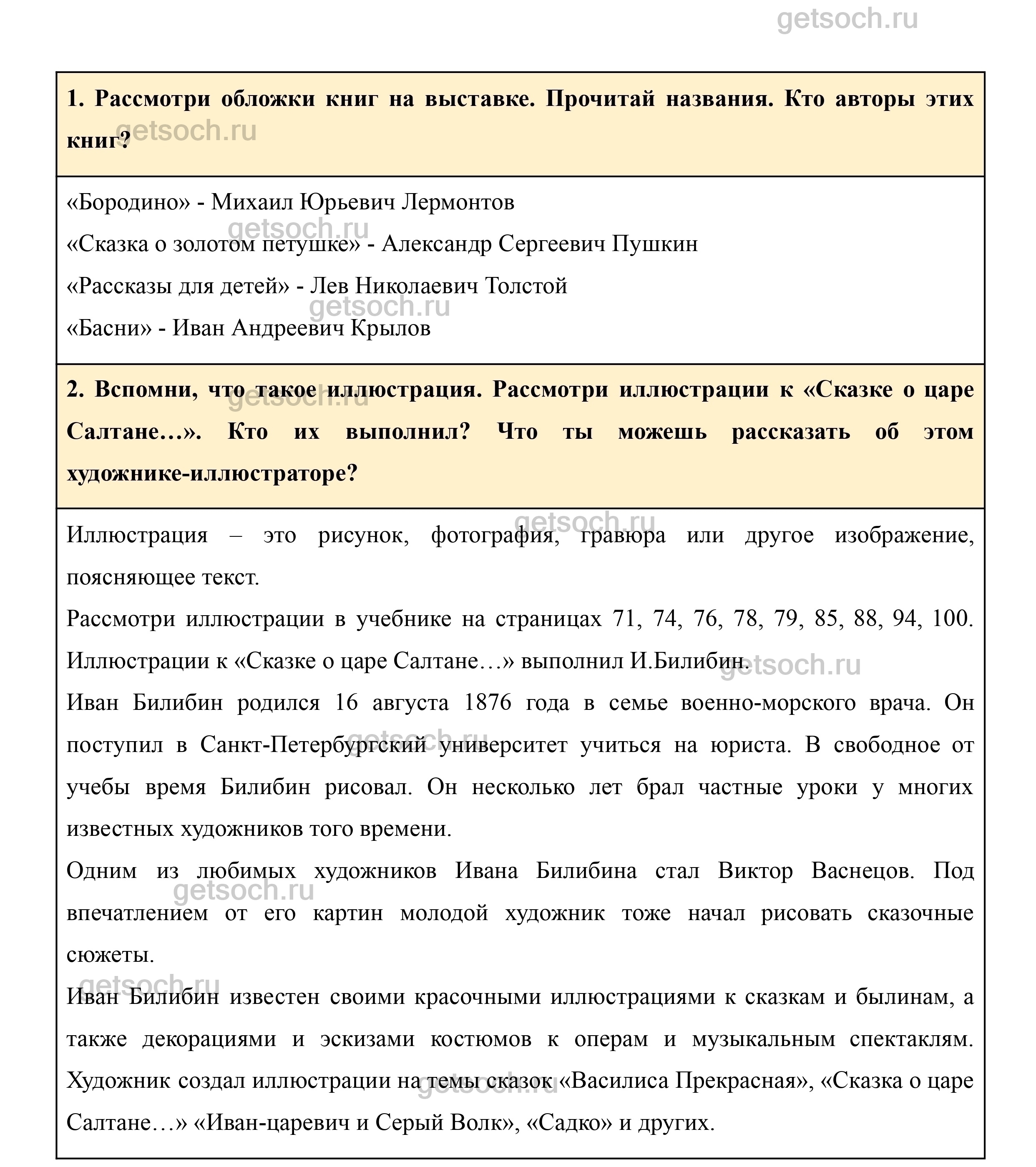 2. Вспомни, что такое иллюстрация. Рассмотри иллюстрации к «Сказке о царе Салтане…». Кто их выполнил? Что ты можешь рассказать об этом художнике-иллюстраторе?
