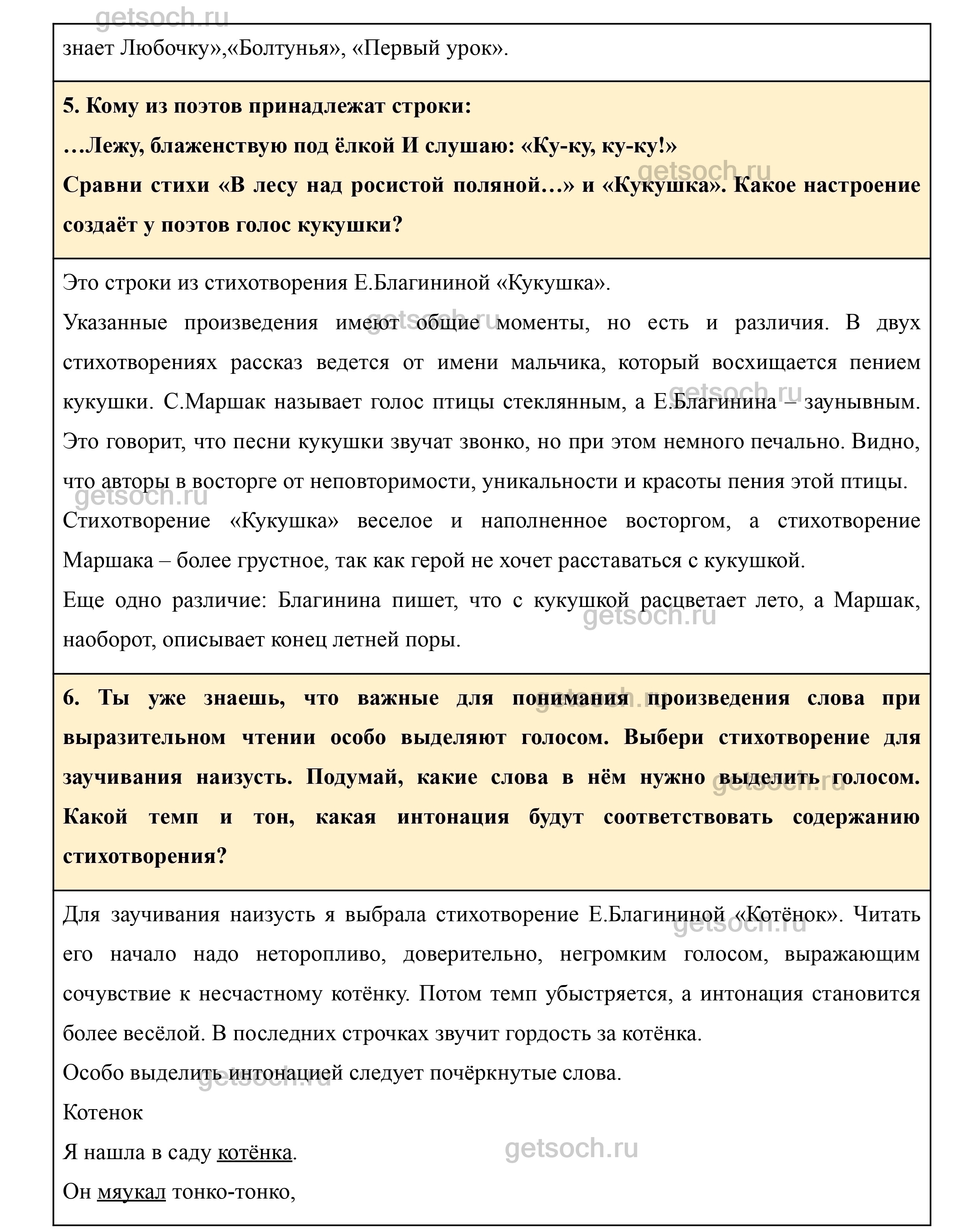 6. Ты уже знаешь, что важные для понимания произведения слова при выразительном чтении особо выделяют голосом. Выбери стихотворение для заучивания наизусть. Подумай, какие слова в нём нужно выделить голосом. Какой темп и тон, какая интонация будут соответствовать содержанию стихотворения?