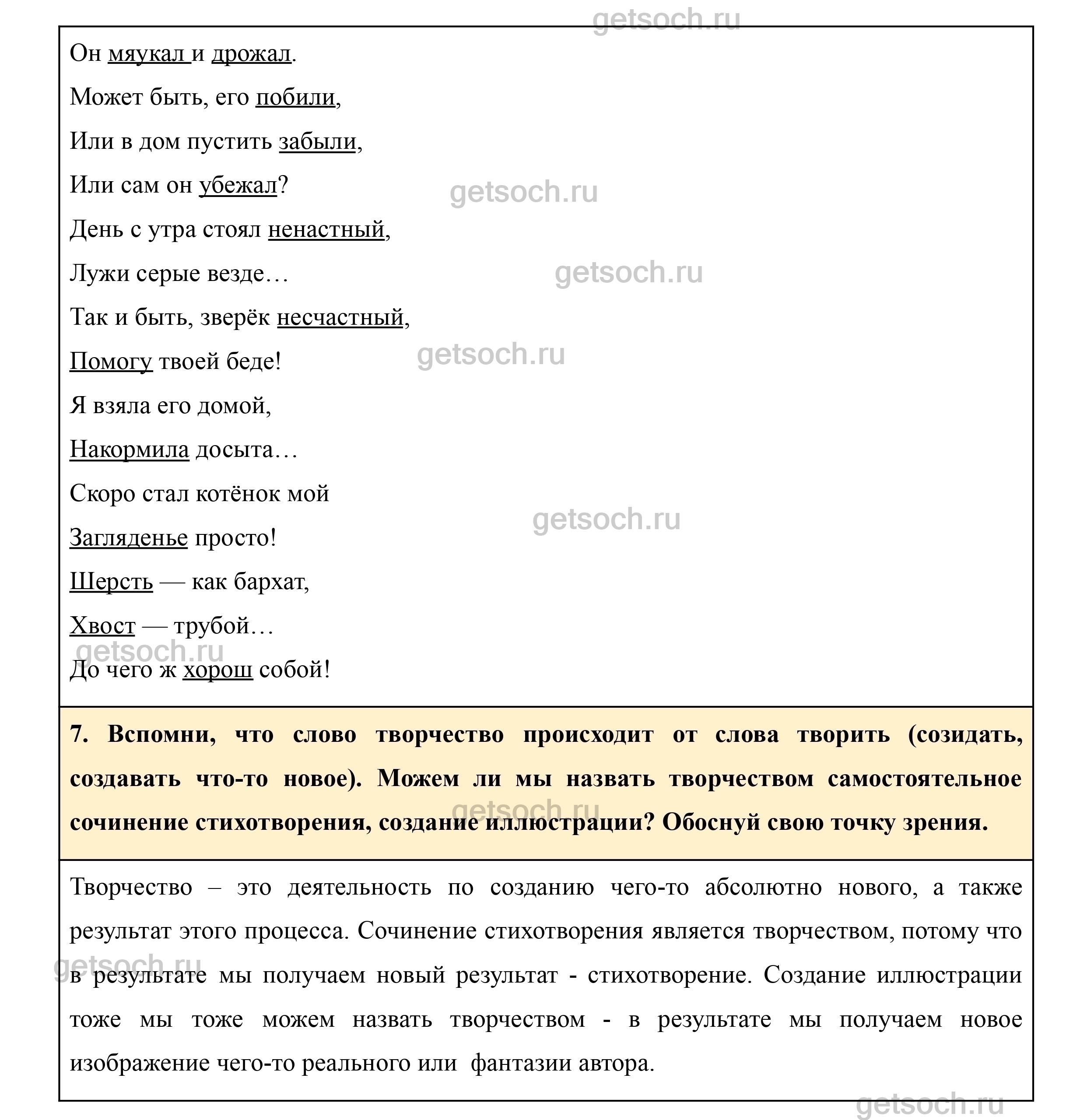 7. Вспомни, что слово творчество происходит от слова творить (созидать, создавать что-то новое). Можем ли мы назвать творчеством самостоятельное сочинение стихотворения, создание иллюстрации? Обоснуй свою точку зрения.