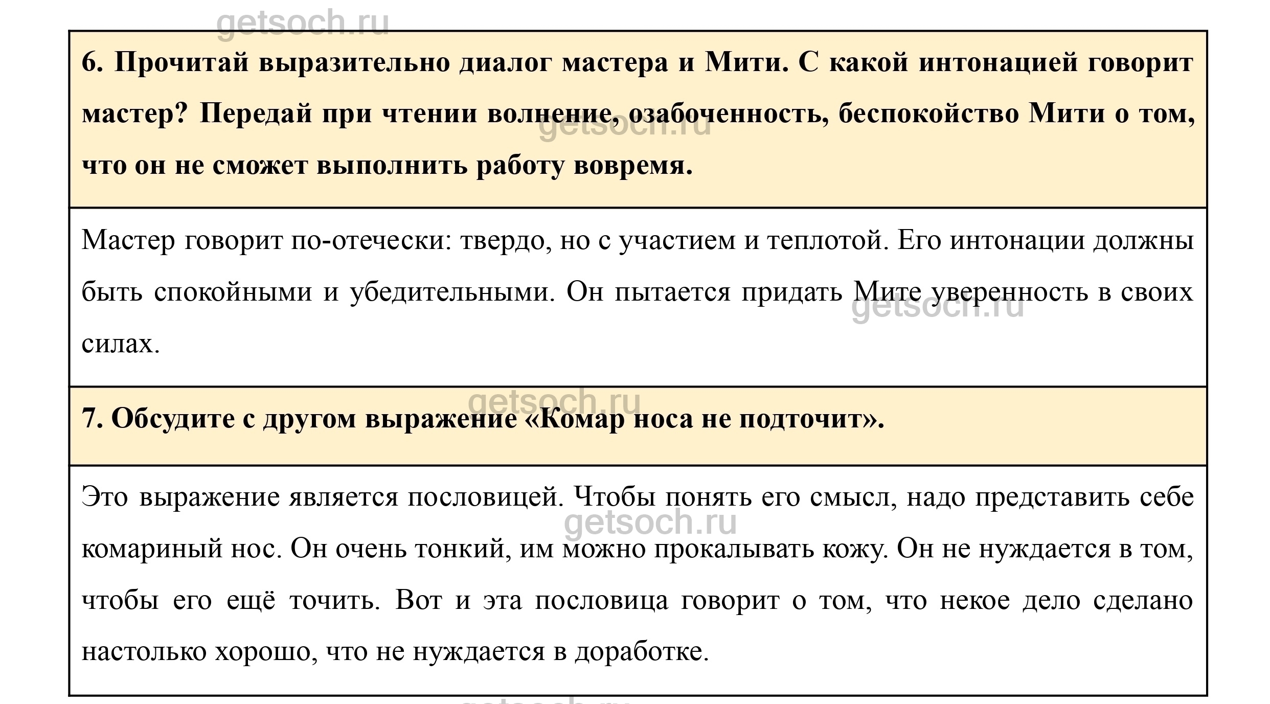 6. Прочитай выразительно диалог мастера и Мити. С какой интонацией говорит мастер? Передай при чтении волнение, озабоченность, беспокойство Мити о том, что он не сможет выполнить работу вовремя.