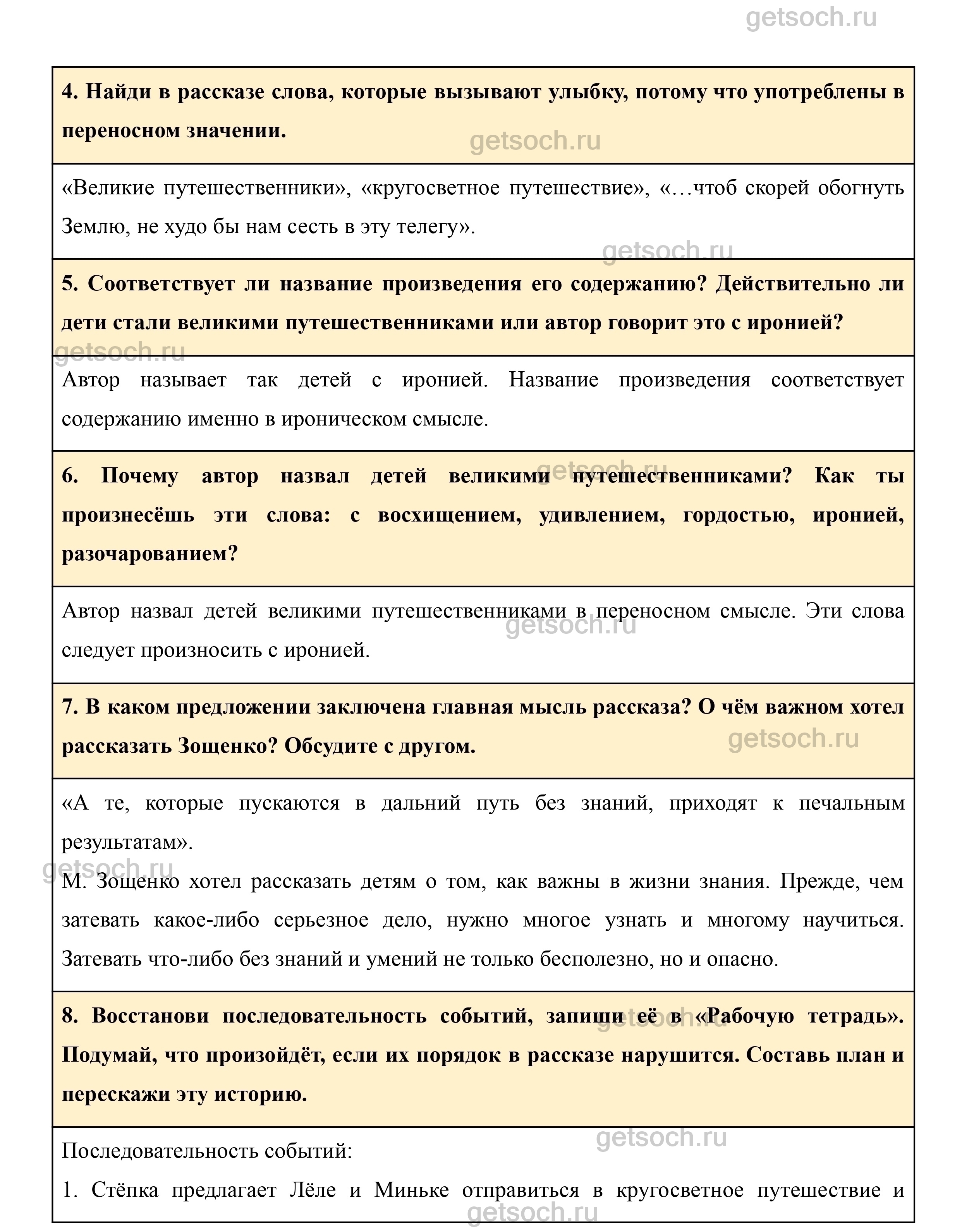 7. В каком предложении заключена главная мысль рассказа? О чём важном хотел рассказать Зощенко? Обсудите с другом.