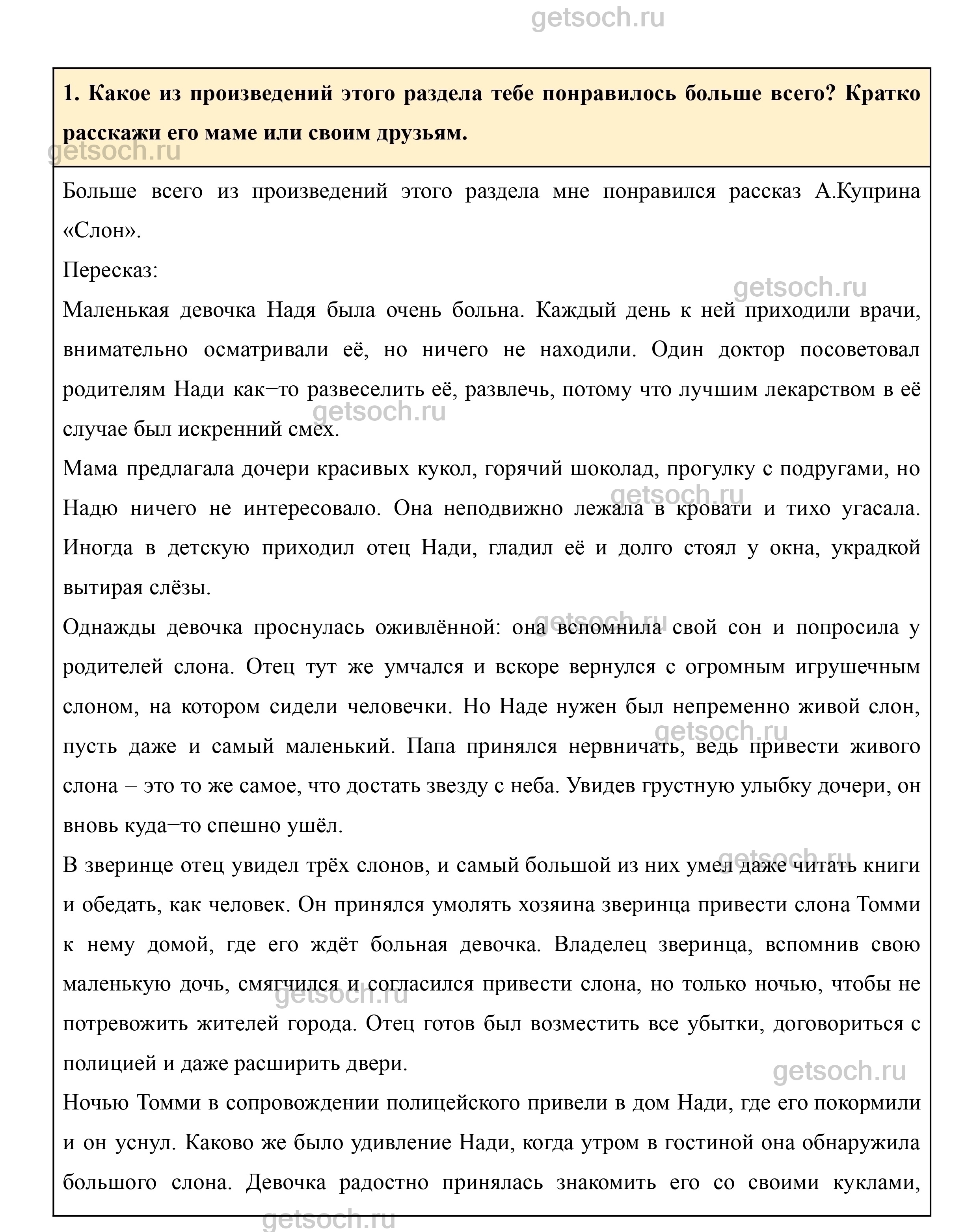 1. Какое из произведений этого раздела тебе понравилось больше всего? Кратко расскажи его маме или своим друзьям.