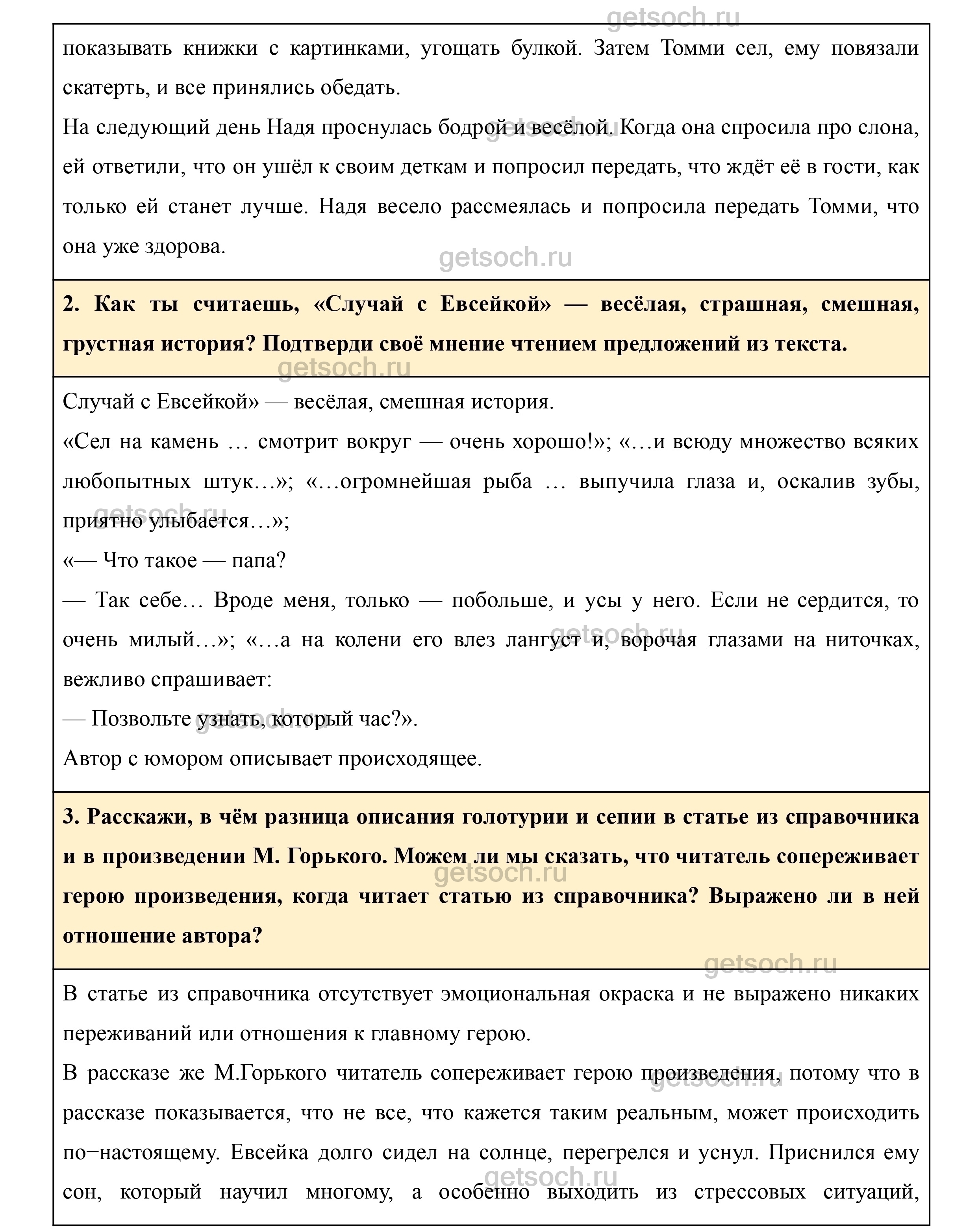3. Расскажи, в чём разница описания голотурии и сепии в статье из справочника и в произведении М. Горького. Можем ли мы сказать, что читатель сопереживает герою произведения, когда читает статью из справочника? Выражено ли в ней отношение автора?