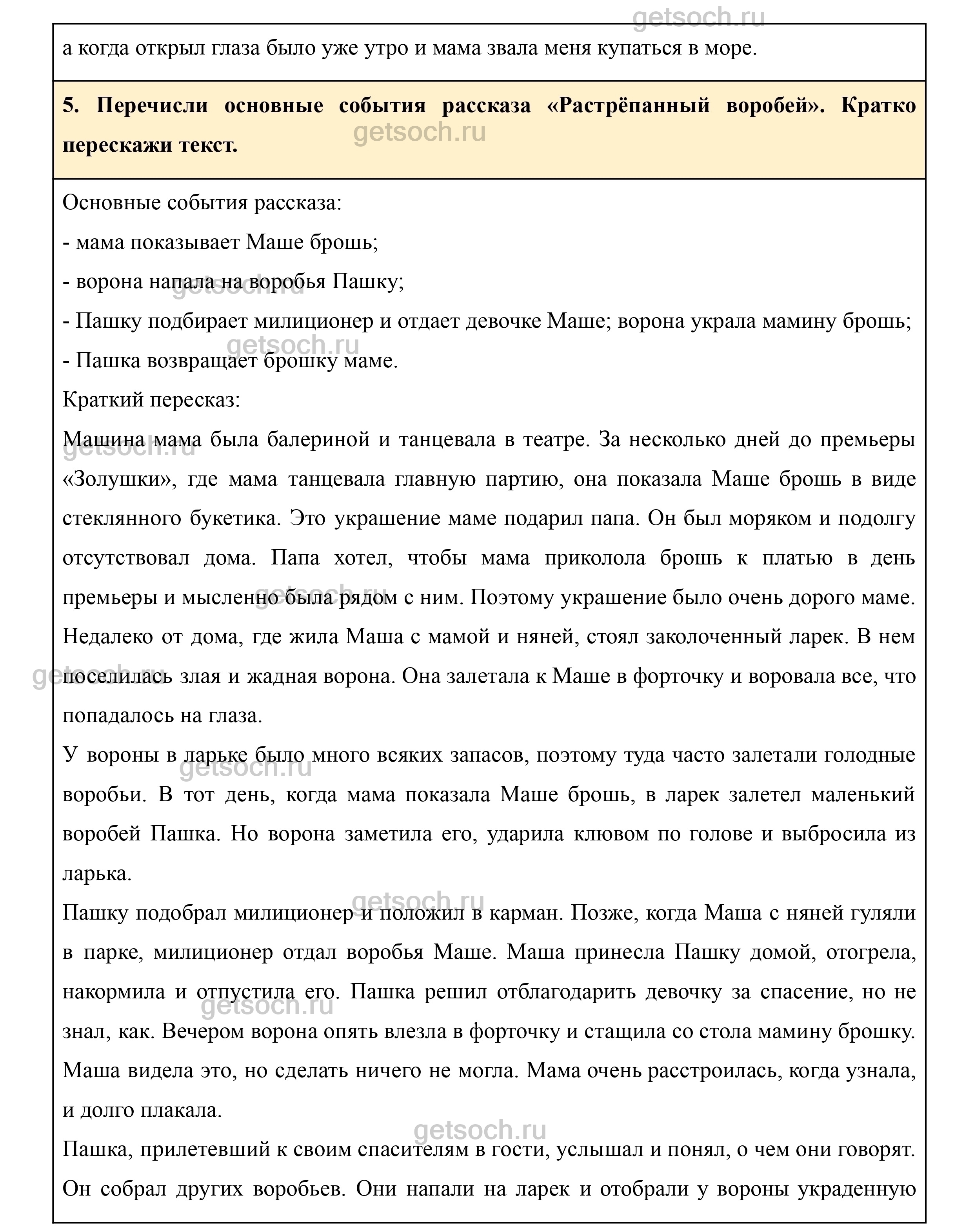 5. Перечисли основные события рассказа «Растрёпанный воробей». Кратко перескажи текст.