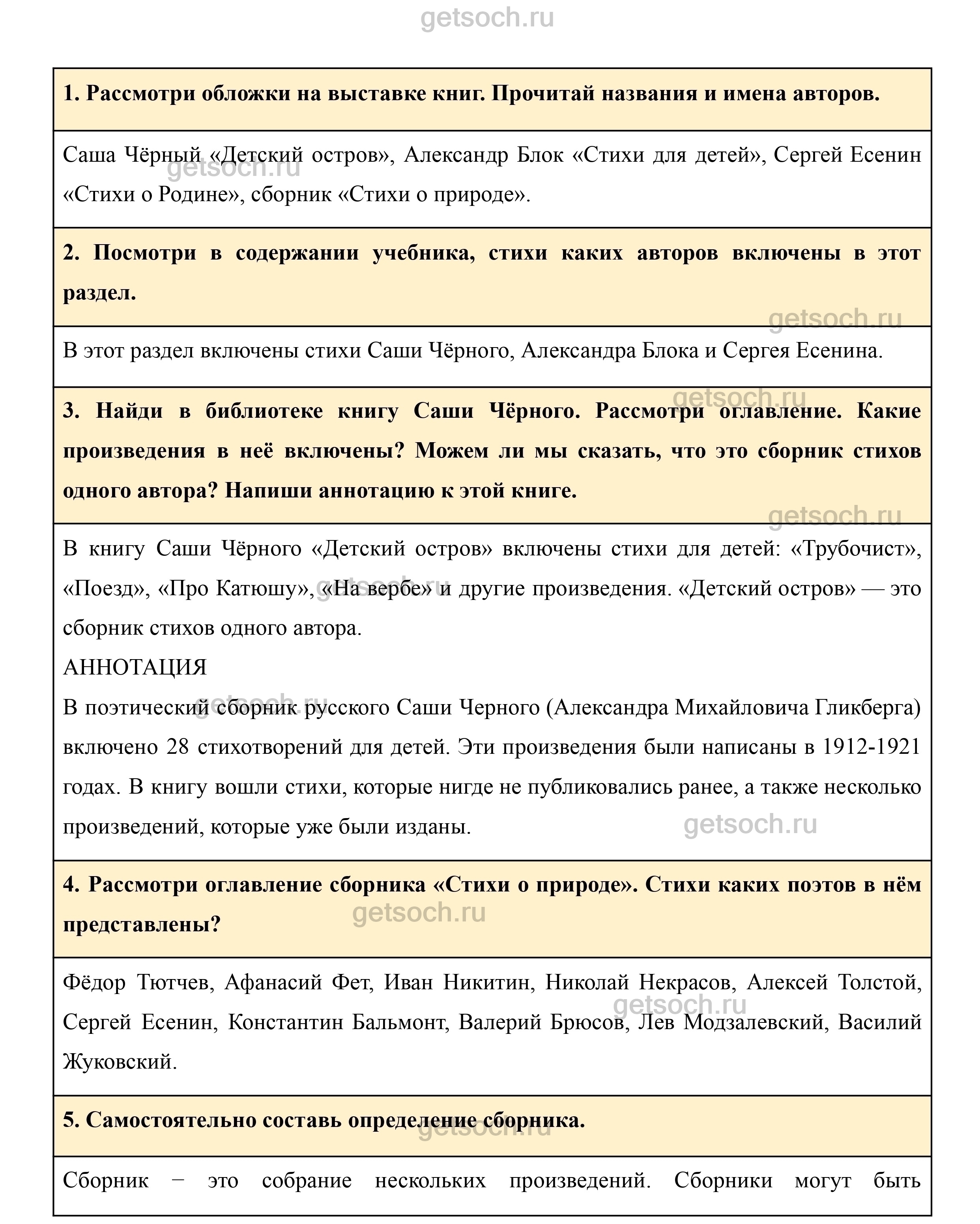 3. Найди в библиотеке книгу Саши Чёрного. Рассмотри оглавление. Какие произведения в неё включены? Можем ли мы сказать, что это сборник стихов одного автора? Напиши аннотацию к этой книге.