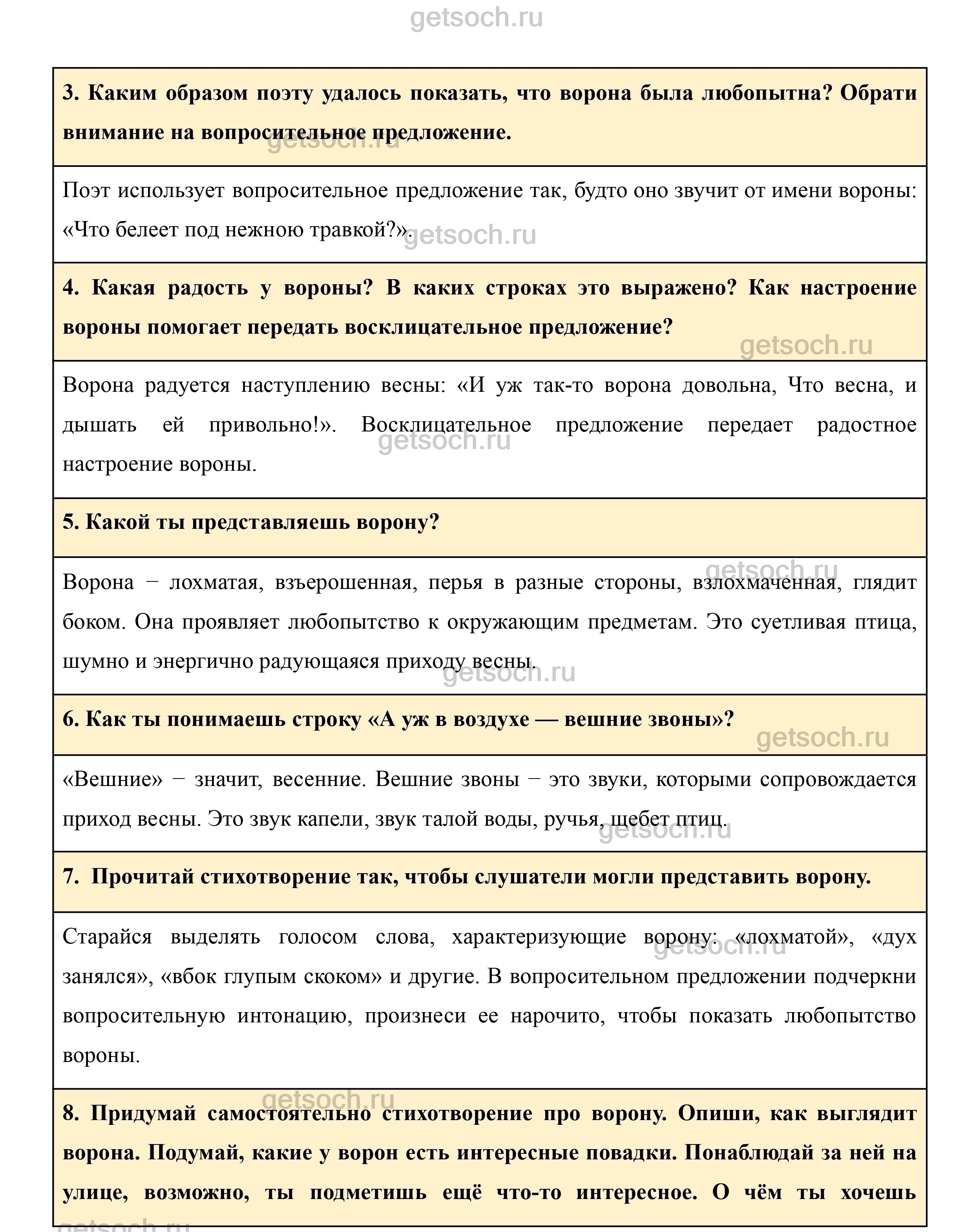 3. Каким образом поэту удалось показать, что ворона была любопытна? Обрати внимание на вопросительное предложение.