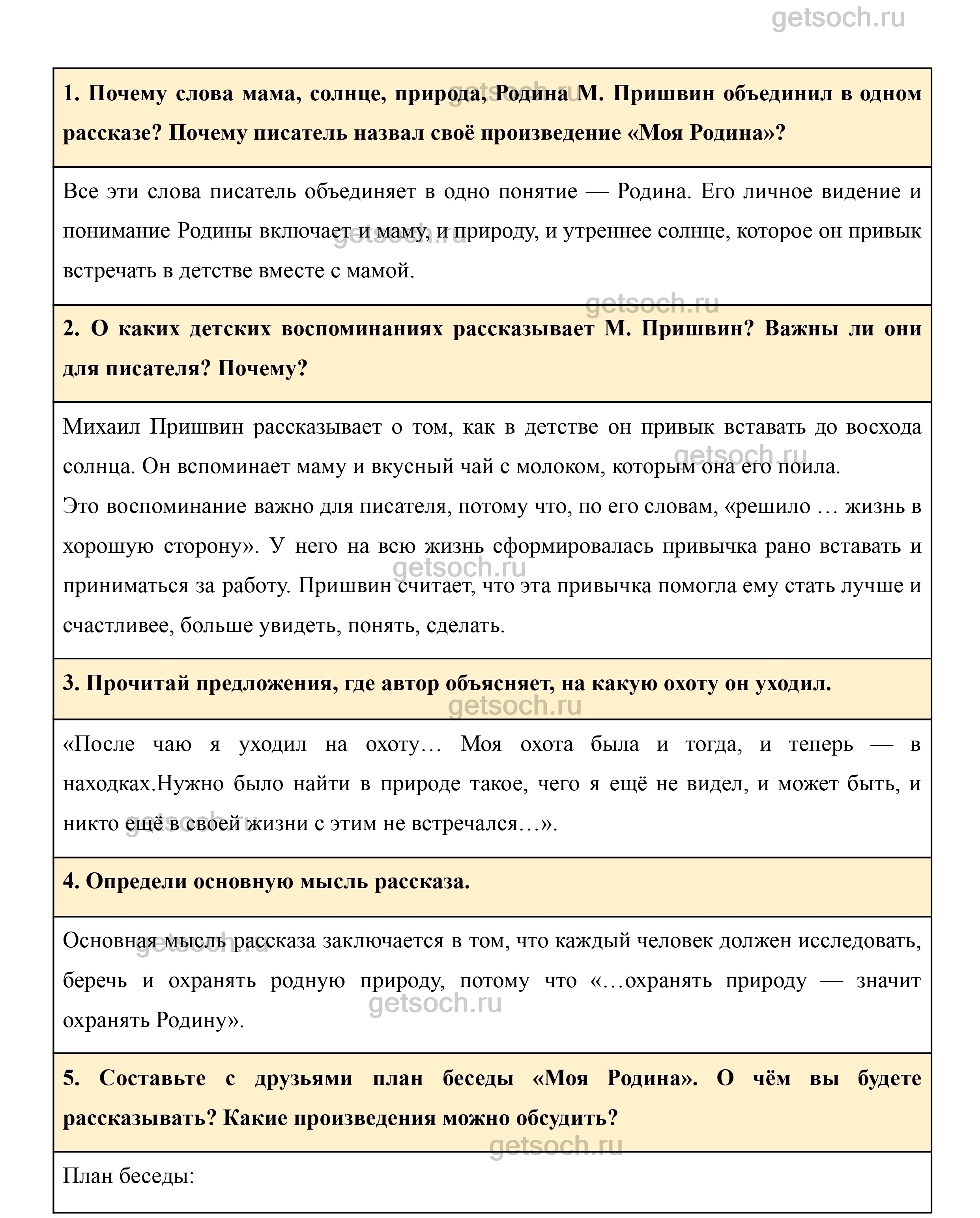 1. Почему слова мама, солнце, природа, Родина М. Пришвин объединил в одном рассказе? Почему писатель назвал своё произведение «Моя Родина»?