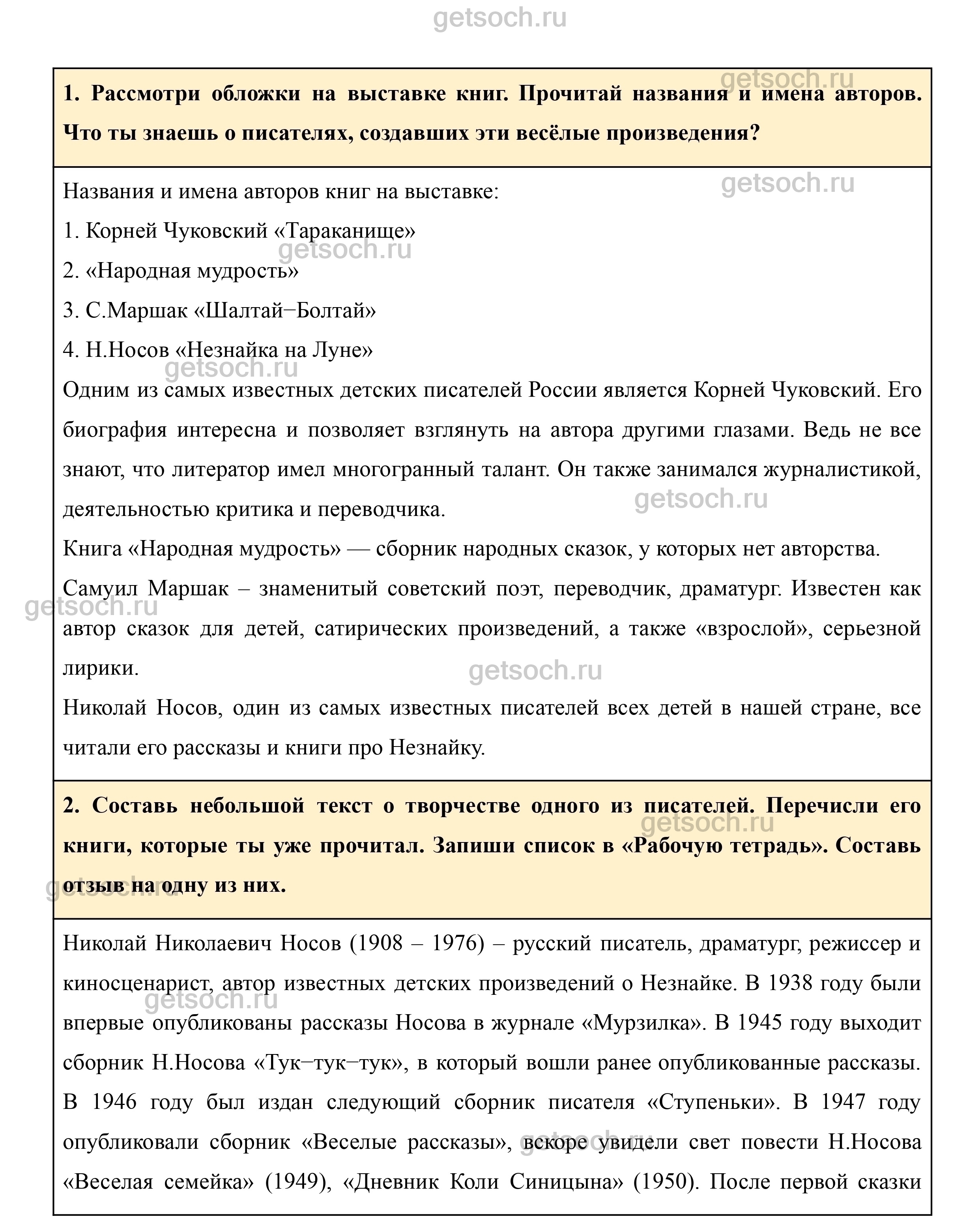 2. Составь небольшой текст о творчестве одного из писателей. Перечисли его книги, которые ты уже прочитал. Запиши список в «Рабочую тетрадь». Составь отзыв на одну из них.