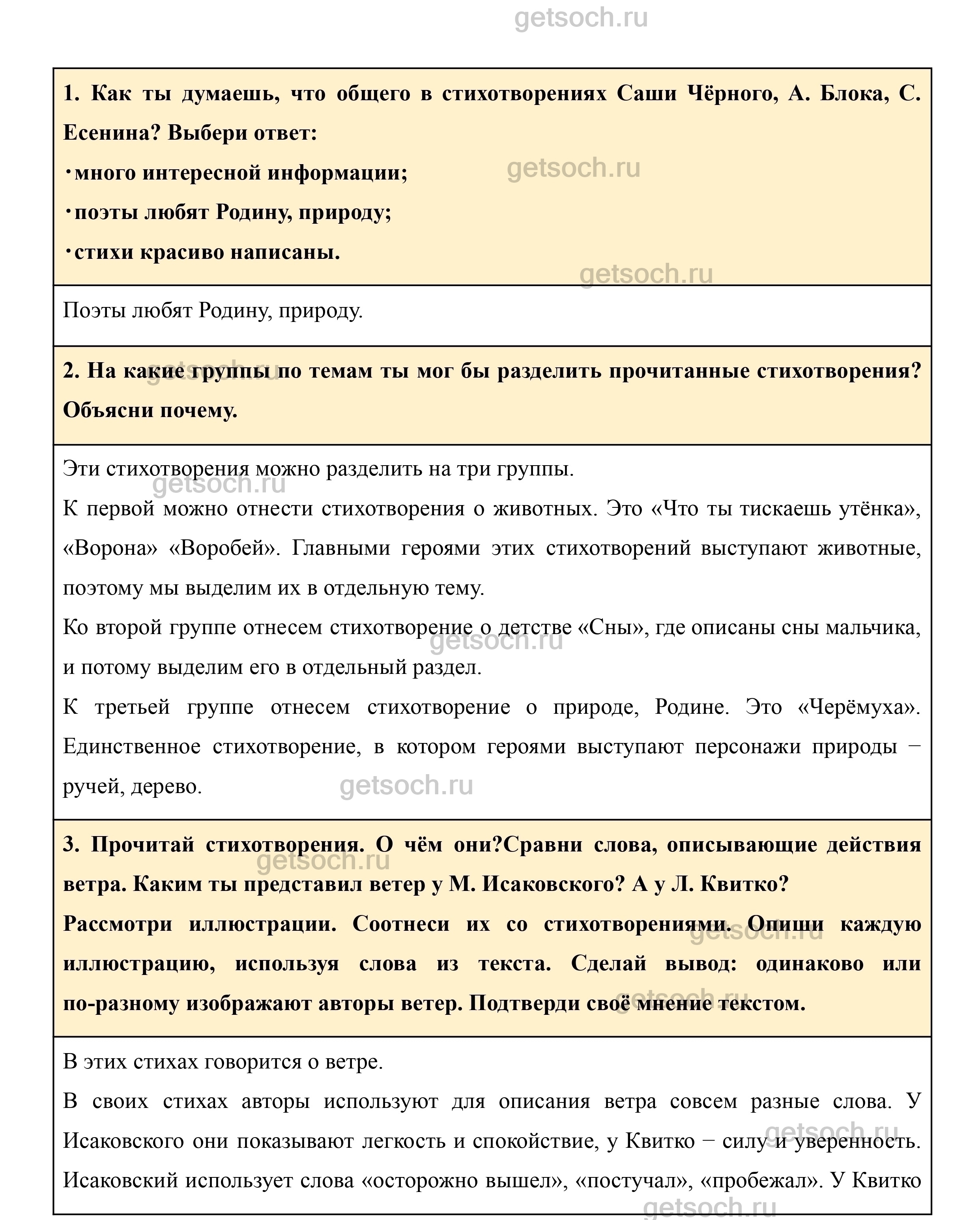 1. Как ты думаешь, что общего в стихотворениях Саши Чёрного, А. Блока, С. Есенина? Выбери ответ: