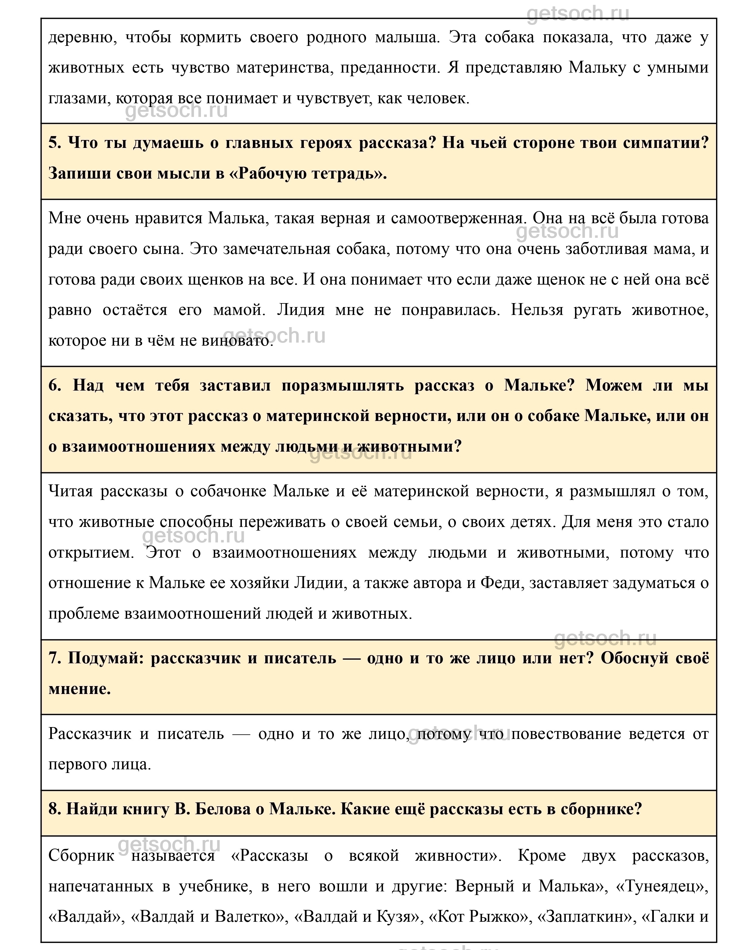6. Над чем тебя заставил поразмышлять рассказ о Мальке? Можем ли мы сказать, что этот рассказ о материнской верности, или он о собаке Мальке, или он о взаимоотношениях между людьми и животными?