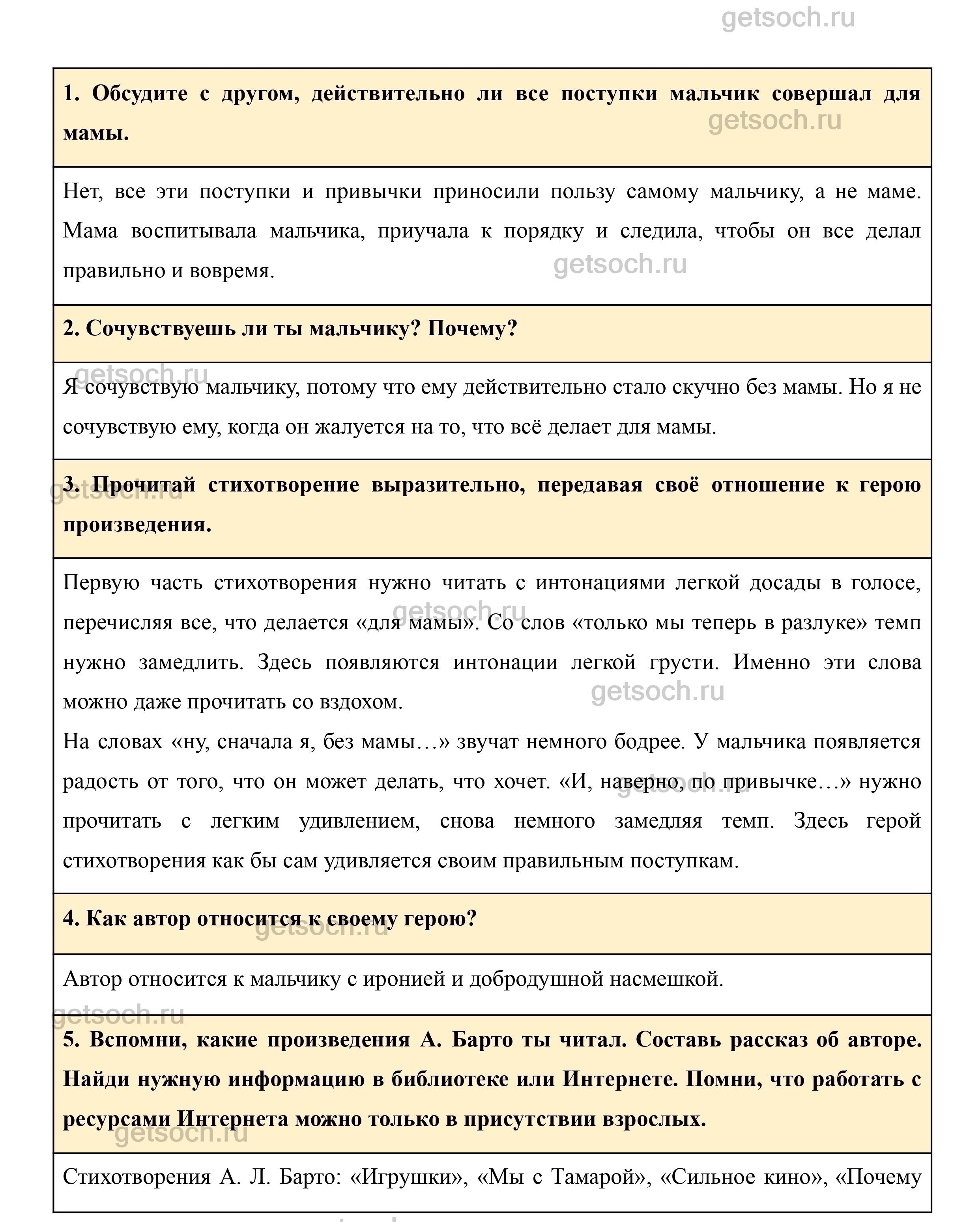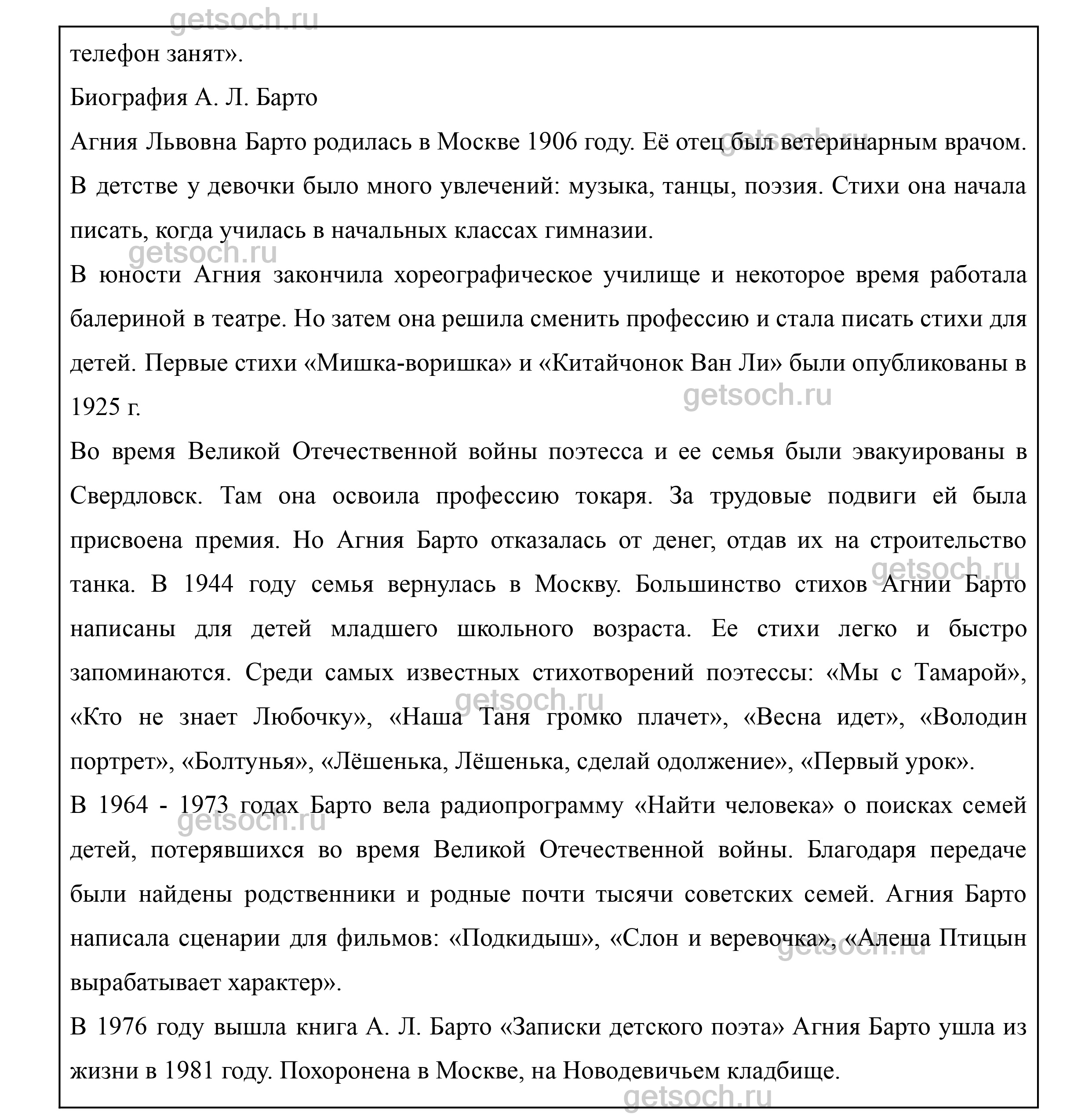 5. Вспомни, какие произведения А. Барто ты читал. Составь рассказ об авторе. Найди нужную информацию в библиотеке или Интернете. Помни, что работать с ресурсами Интернета можно только в присутствии взрослых.