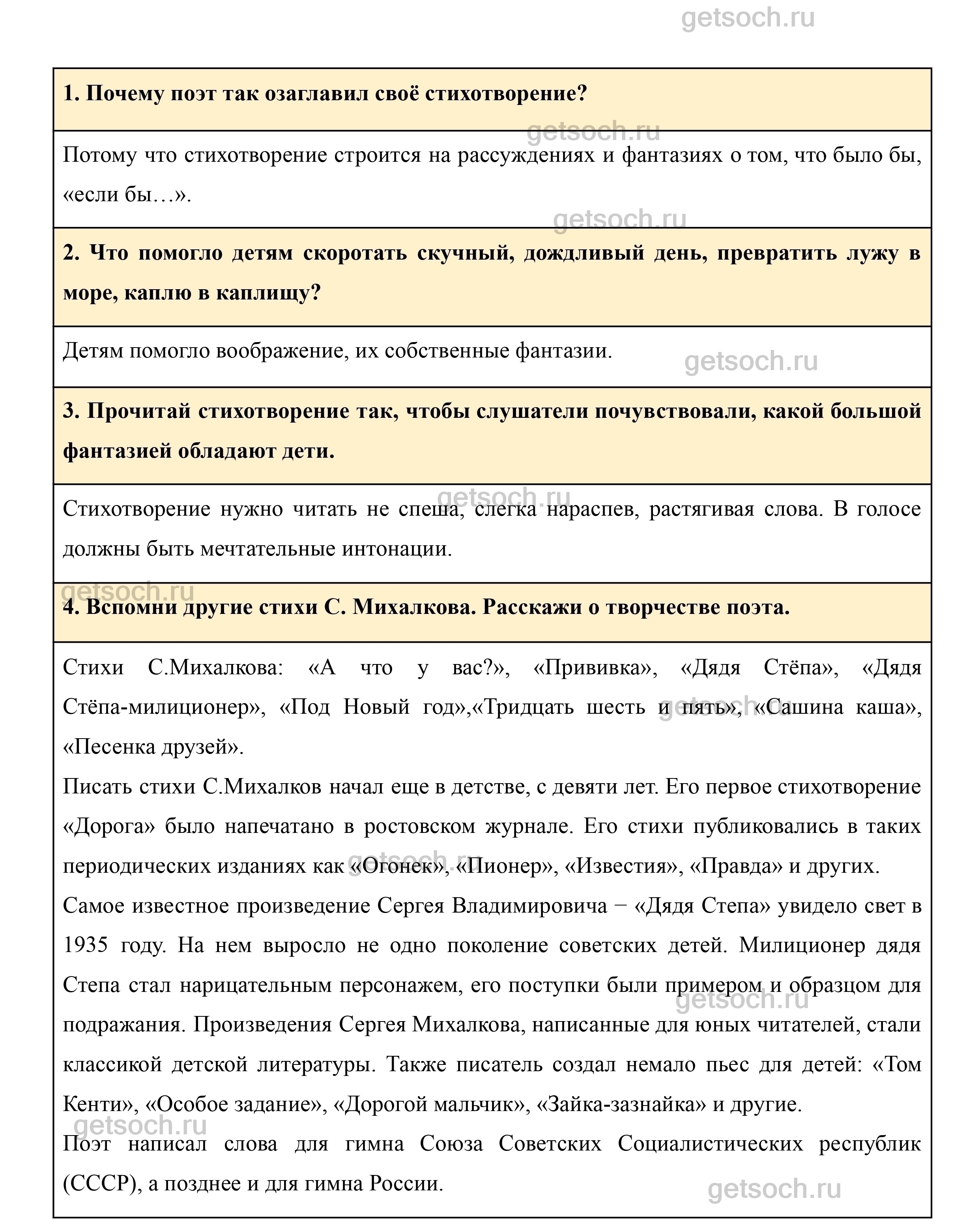 4. Вспомни другие стихи С. Михалкова. Расскажи о творчестве поэта.