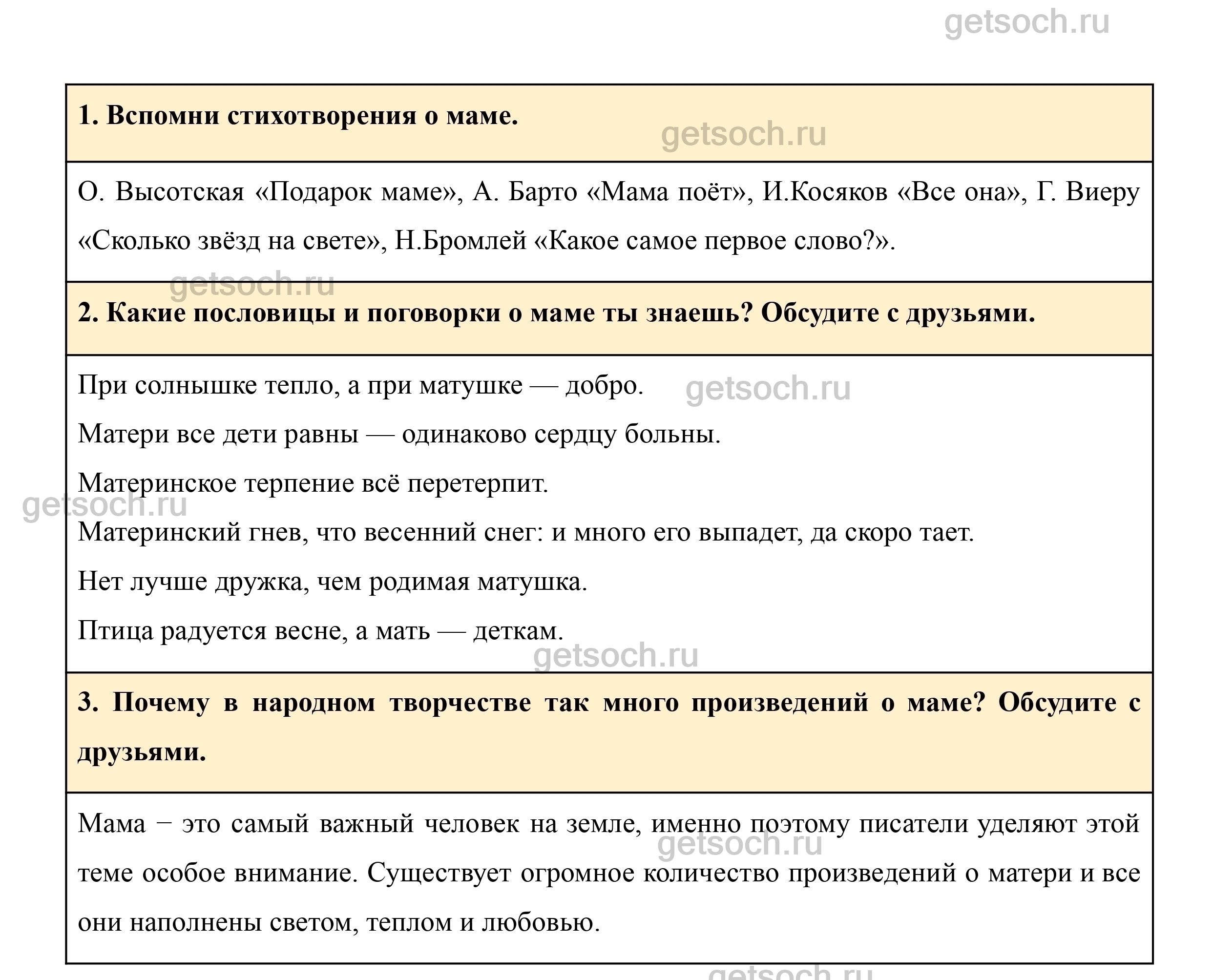 3. Почему в народном творчестве так много произведений о маме? Обсудите с друзьями.