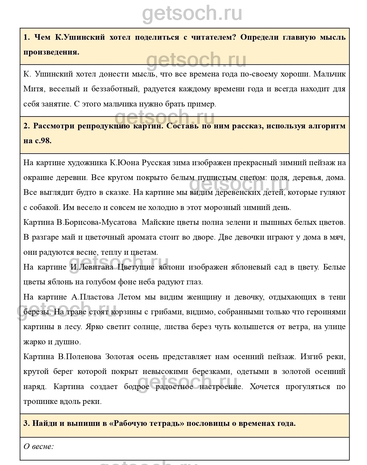 Рассмотри репродукцию картин. Составь по ним рассказ, используя алгоритм на с.98.