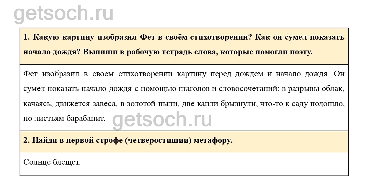 Какую картину изобразил Фет в своём стихотворении? Как он сумел показать начало дождя? Выпиши в рабочую тетрадь слова, которые помогли поэту.