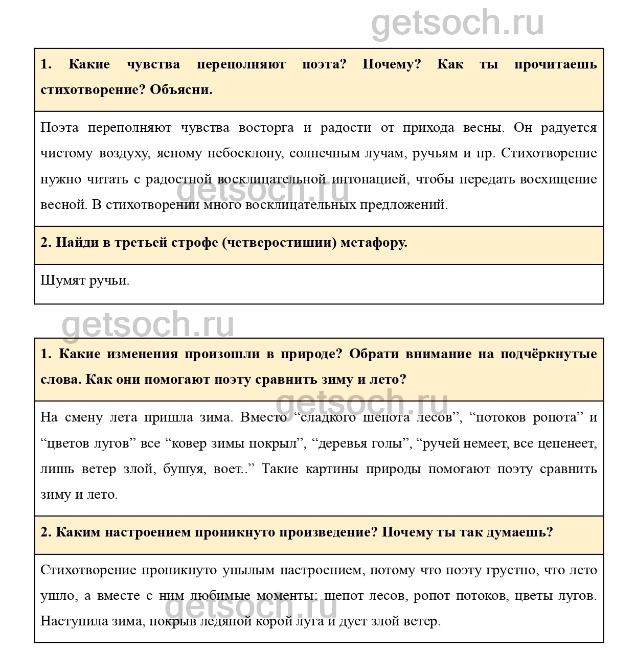 Какие изменения произошли в природе? Обрати внимание на подчёркнутые слова. Как они помогают поэту сравнить зиму и лето?