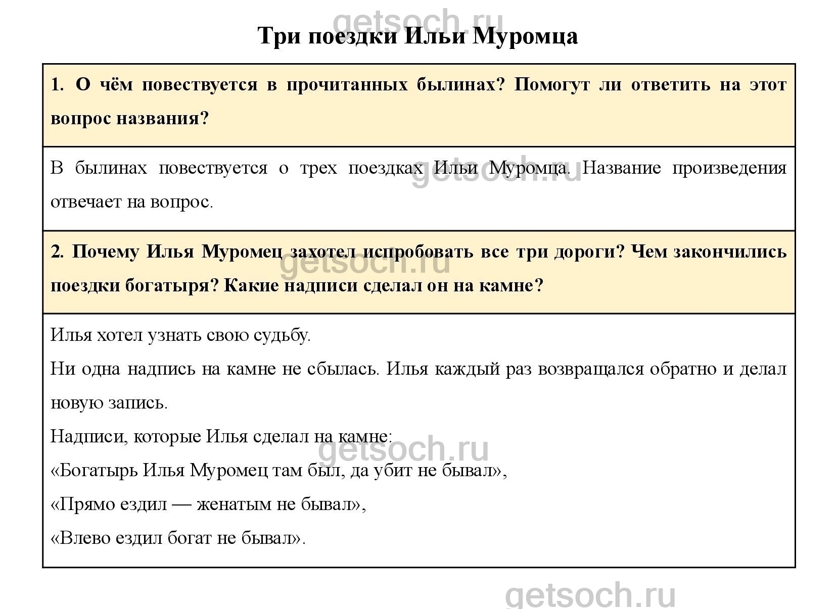 Почему Илья Муромец захотел испробовать все три дороги? Чем закончились поездки богатыря? Какие надписи сделал он на камне?