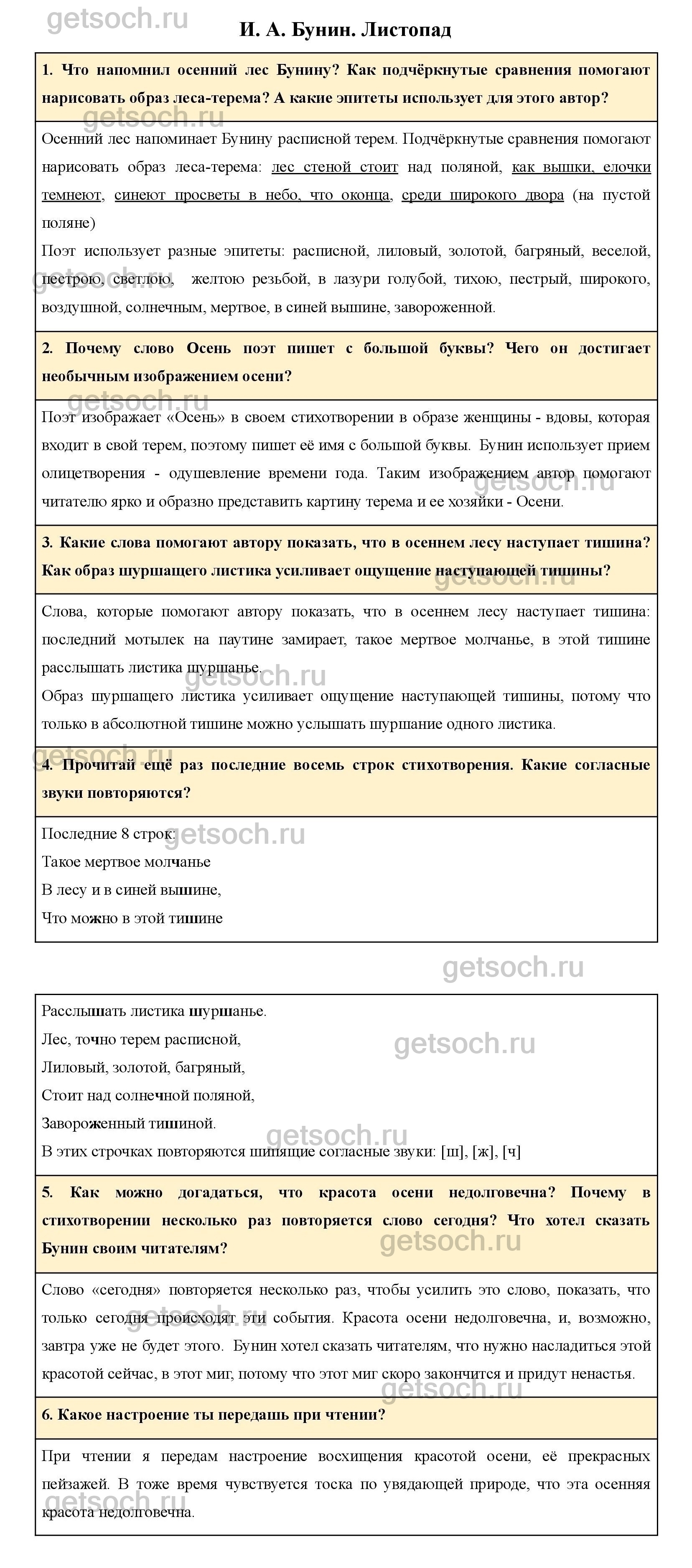 Какие слова помогают автору показать, что в осеннем лесу наступает тишина? Как образ шуршащего листика усиливает ощущение наступающей тишины?
