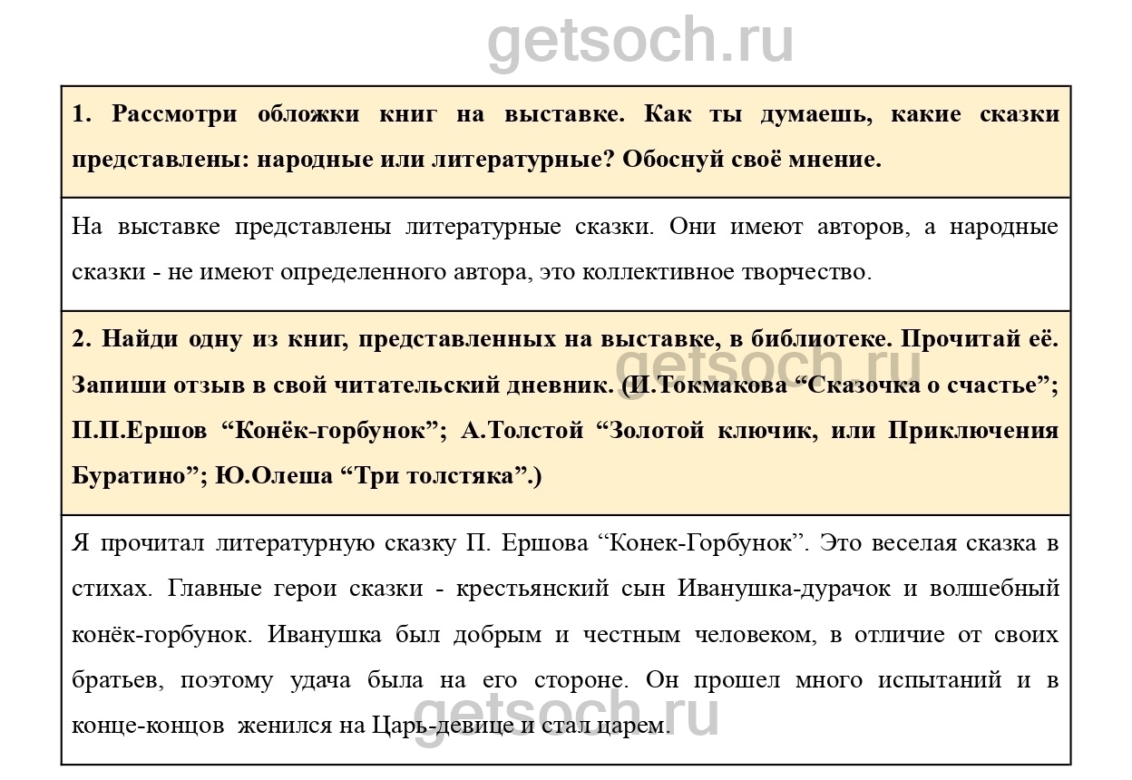 Найди одну из книг, представленных на выставке, в библиотеке. Прочитай её. Запиши отзыв в свой читательский дневник. (И.Токмакова “Сказочка о счастье”; П.П.Ершов “Конёк-горбунок”; А.Толстой “Золотой ключик, или Приключения Буратино”; Ю.Олеша “Три толстяка”.)