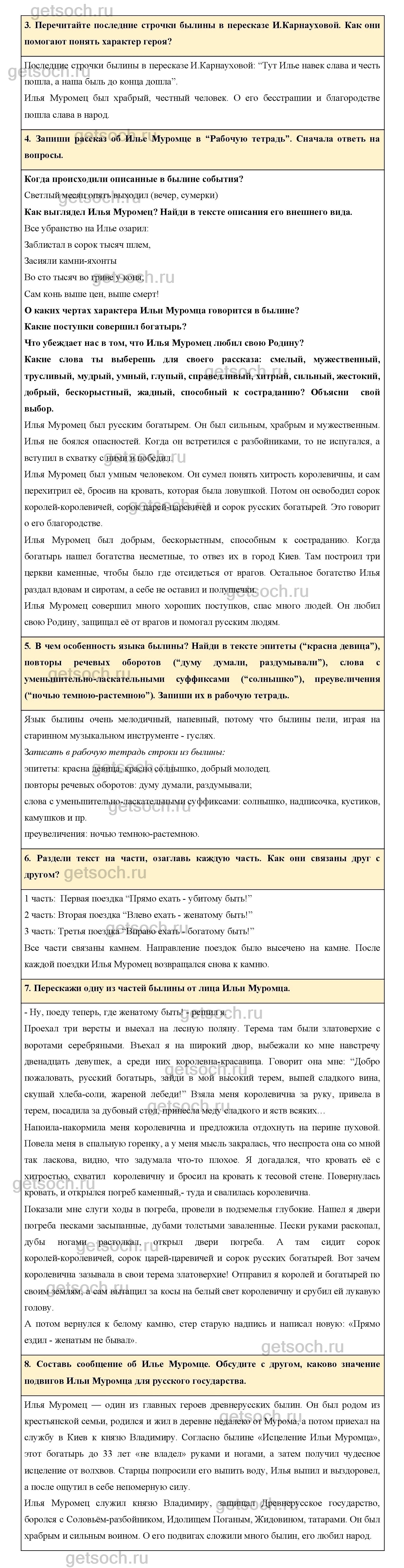 Запиши рассказ об Илье Муромце в “Рабочую тетрадь”. Сначала ответь на вопросы.
