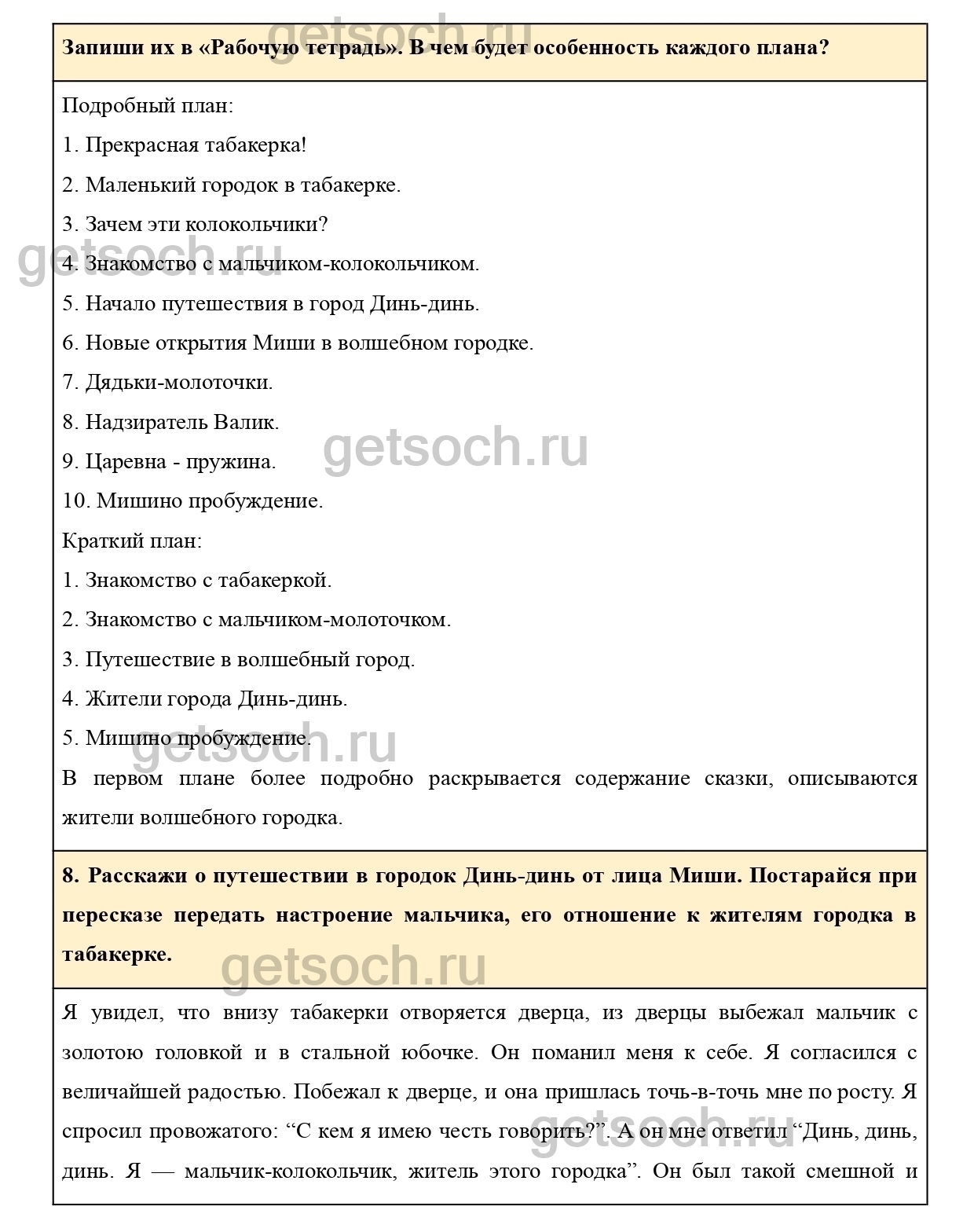 Составь два плана произведения: для краткого и для подробного пересказа. Запиши их в «Рабочую тетрадь». В чем будет особенность каждого плана?