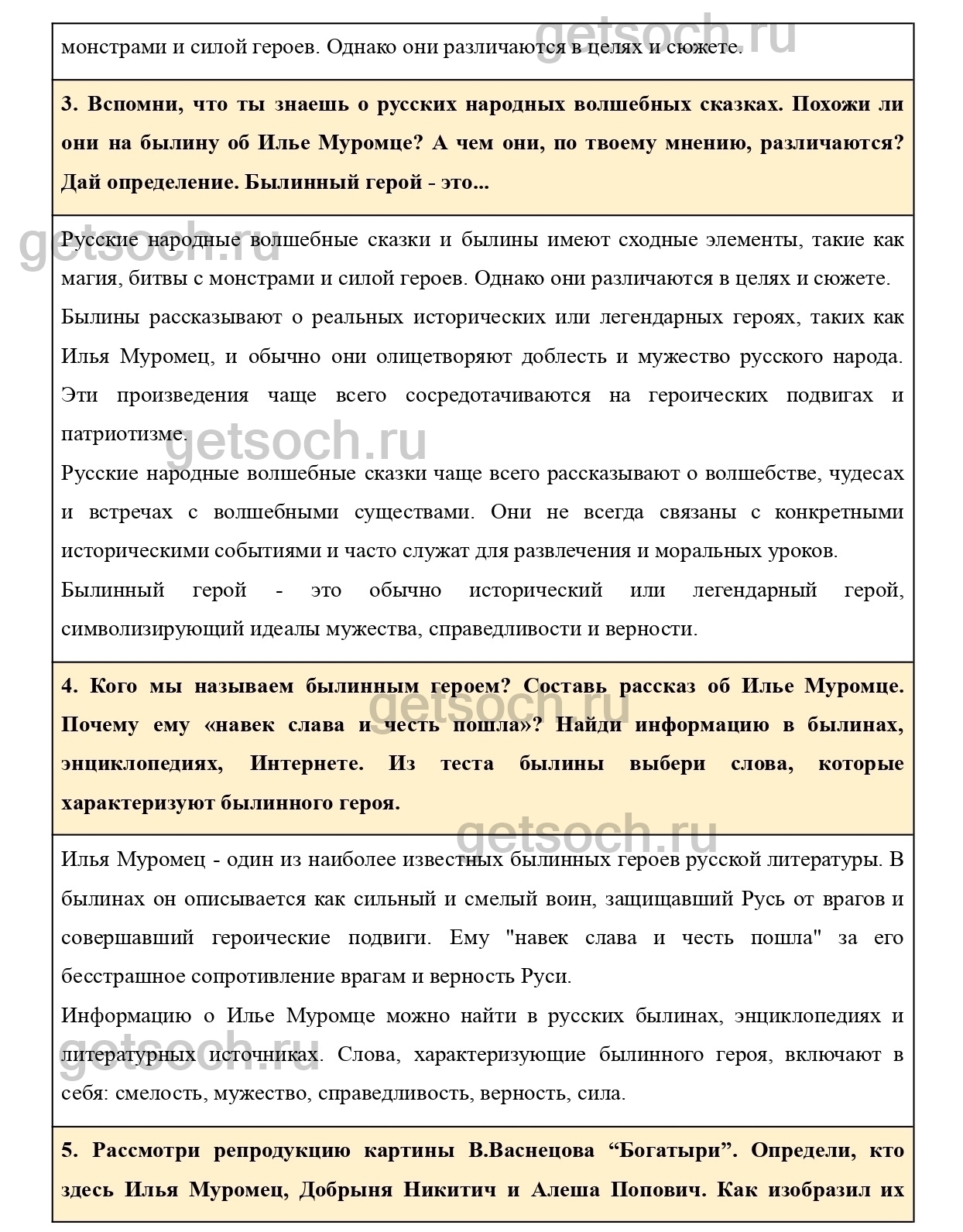 Вспомни, что ты знаешь о русских народных волшебных сказках. Похожи ли они на былину об Илье Муромце? А чем они, по твоему мнению, различаются? Дай определение. Былинный герой – это…