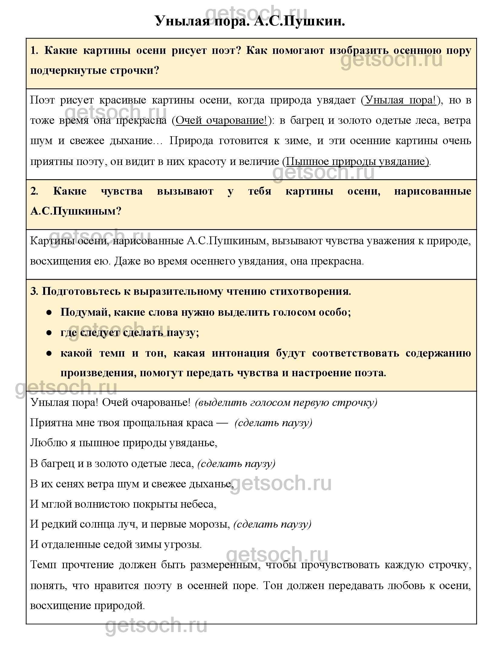 какой темп и тон, какая интонация будут соответствовать содержанию произведения, помогут передать чувства и настроение поэта.