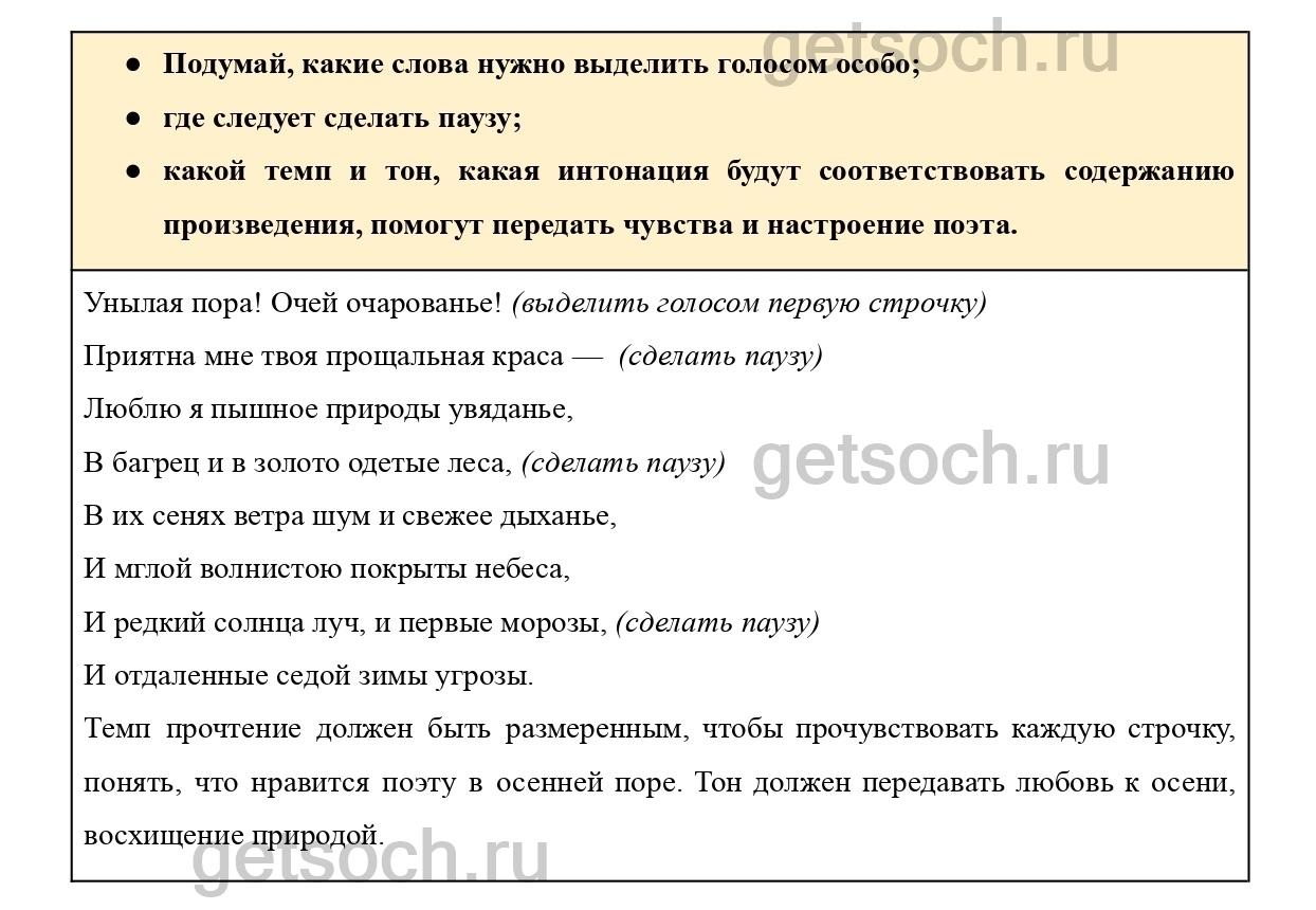 ● какой темп и тон, какая интонация будут соответствовать содержанию произведения, помогут передать чувства и настроение поэта.