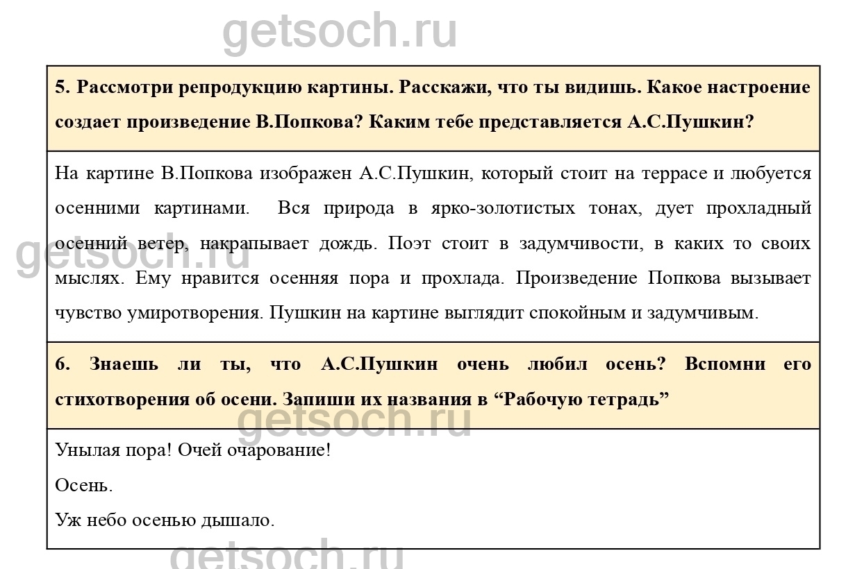 Знаешь ли ты, что А.С.Пушкин очень любил осень? Вспомни его стихотворения об осени. Запиши их названия в “Рабочую тетрадь”