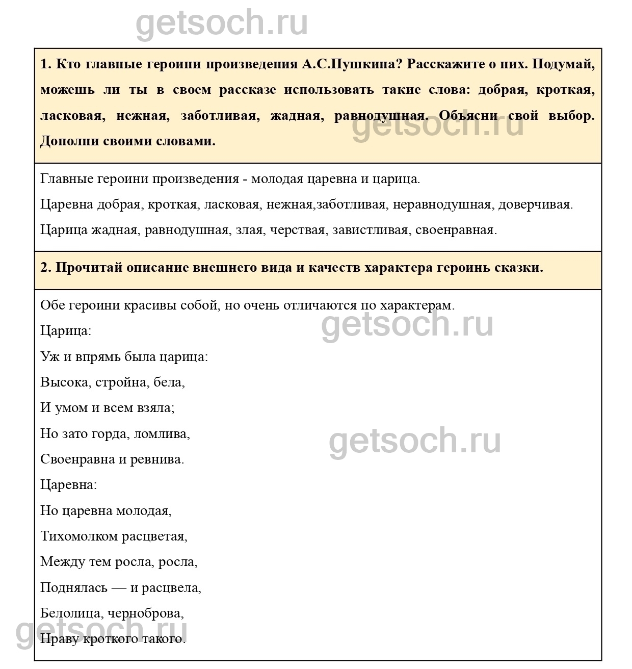 Кто главные героини произведения А.С.Пушкина? Расскажите о них. Подумай, можешь ли ты в своем рассказе использовать такие слова: добрая, кроткая, ласковая, нежная, заботливая, жадная, равнодушная. Объясни свой выбор. Дополни своими словами.