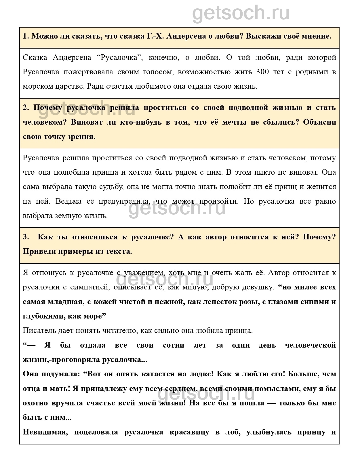 Можно ли сказать, что сказка Г.-Х. Андерсена о любви? Выскажи своё мнение.
