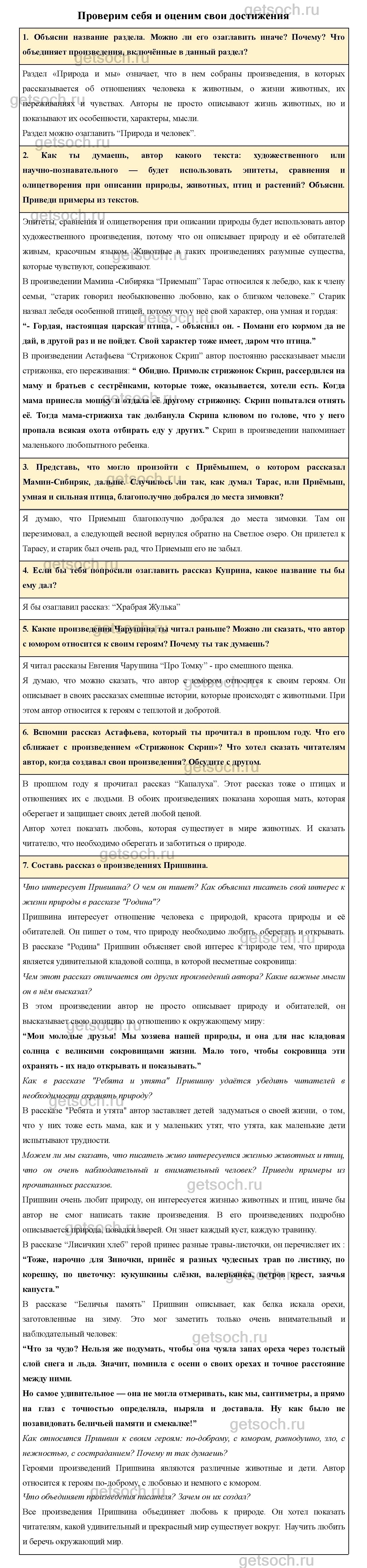 Вспомни рассказ Астафьева, который ты прочитал в прошлом году. Что его сближает с произведением «Стрижонок Скрип»? Что хотел сказать читателям автор, когда создавал свои произведения? Обсудите с другом.