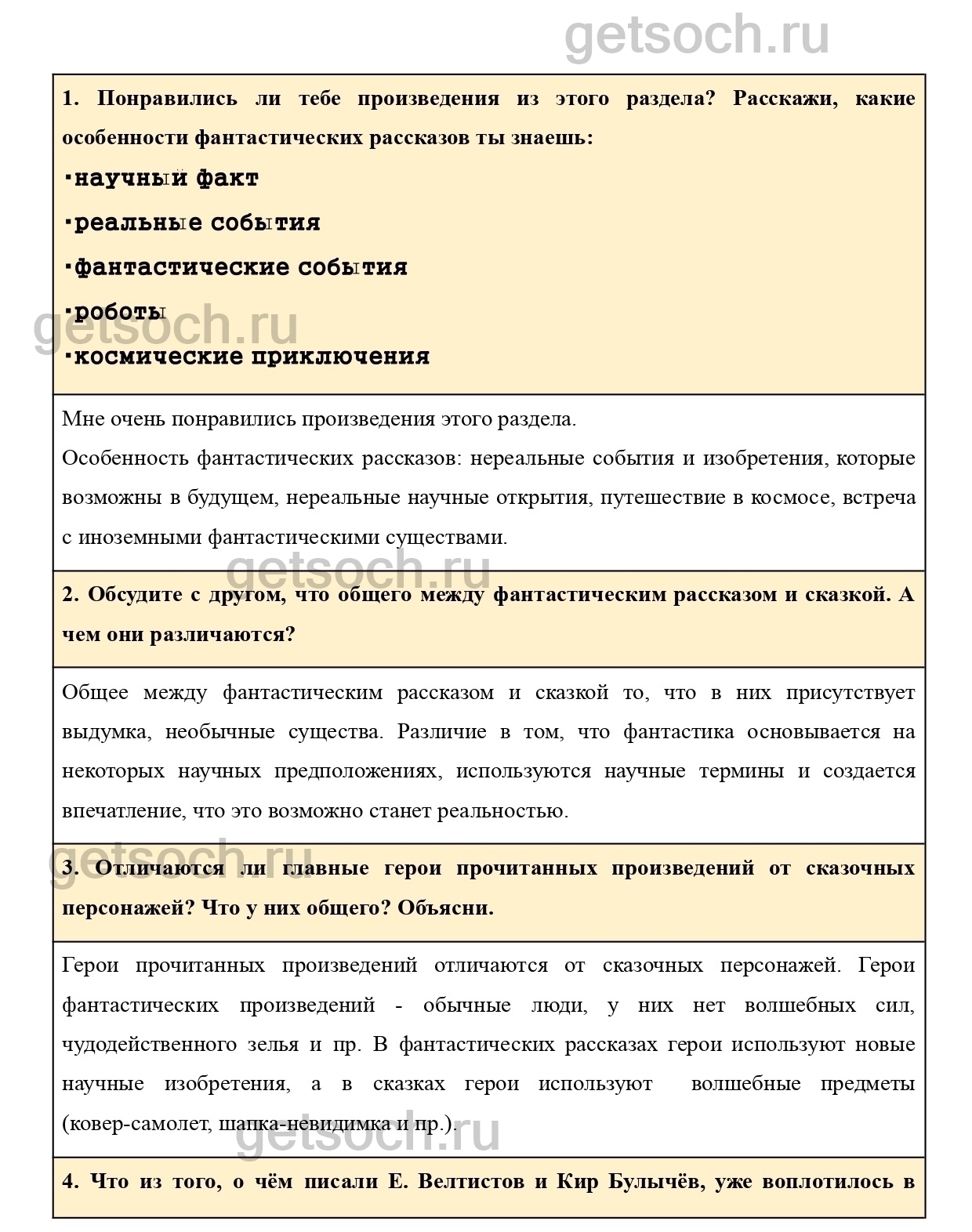Понравились ли тебе произведения из этого раздела? Расскажи, какие особенности фантастических рассказов ты знаешь:
