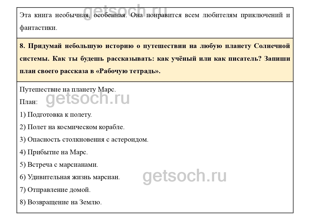 Придумай небольшую историю о путешествии на любую планету Солнечной системы. Как ты будешь рассказывать: как учёный или как писатель? Запиши план своего рассказа в «Рабочую тетрадь».