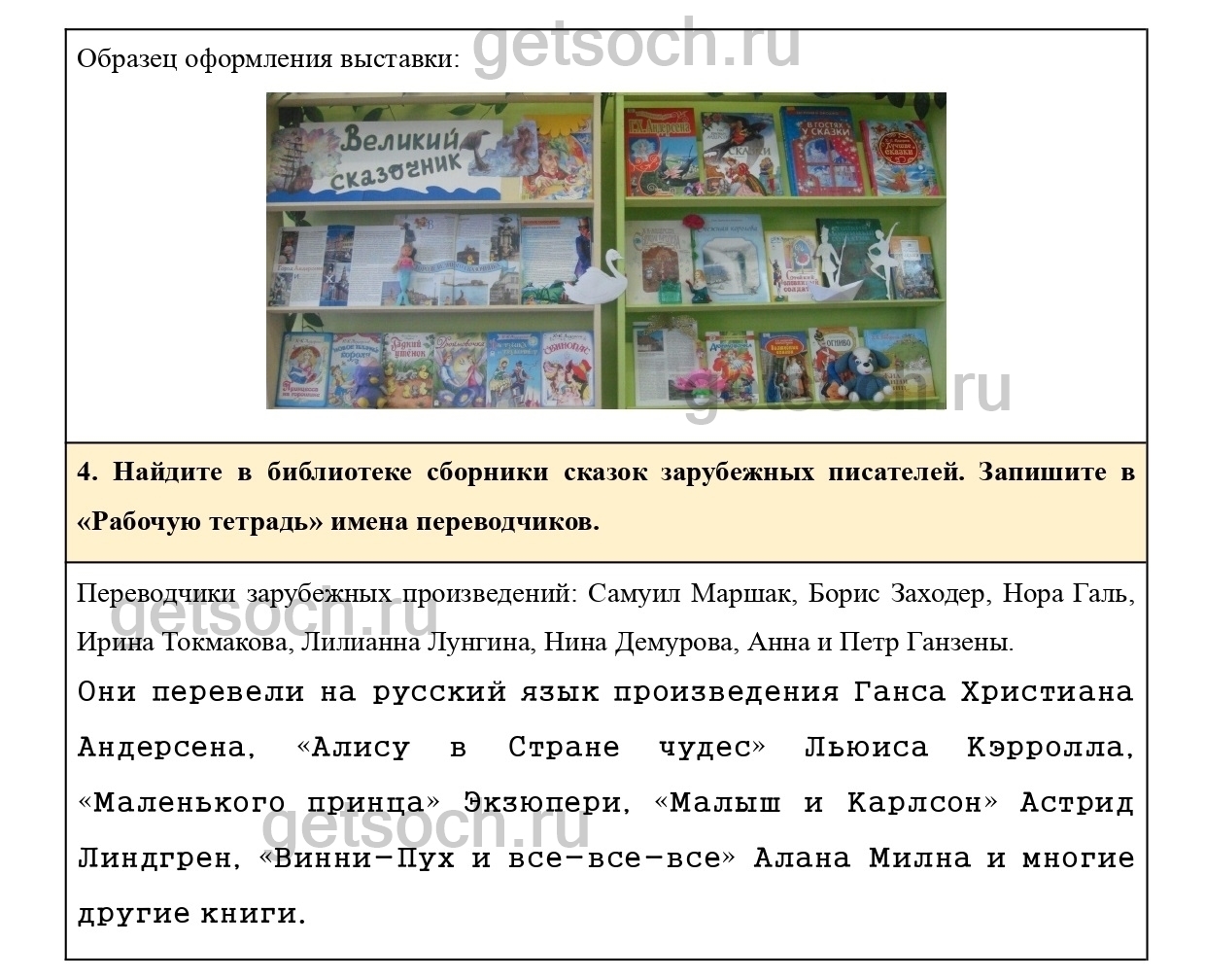 Найдите в библиотеке сборники сказок зарубежных писателей. Запишите в «Рабочую тетрадь» имена переводчиков.