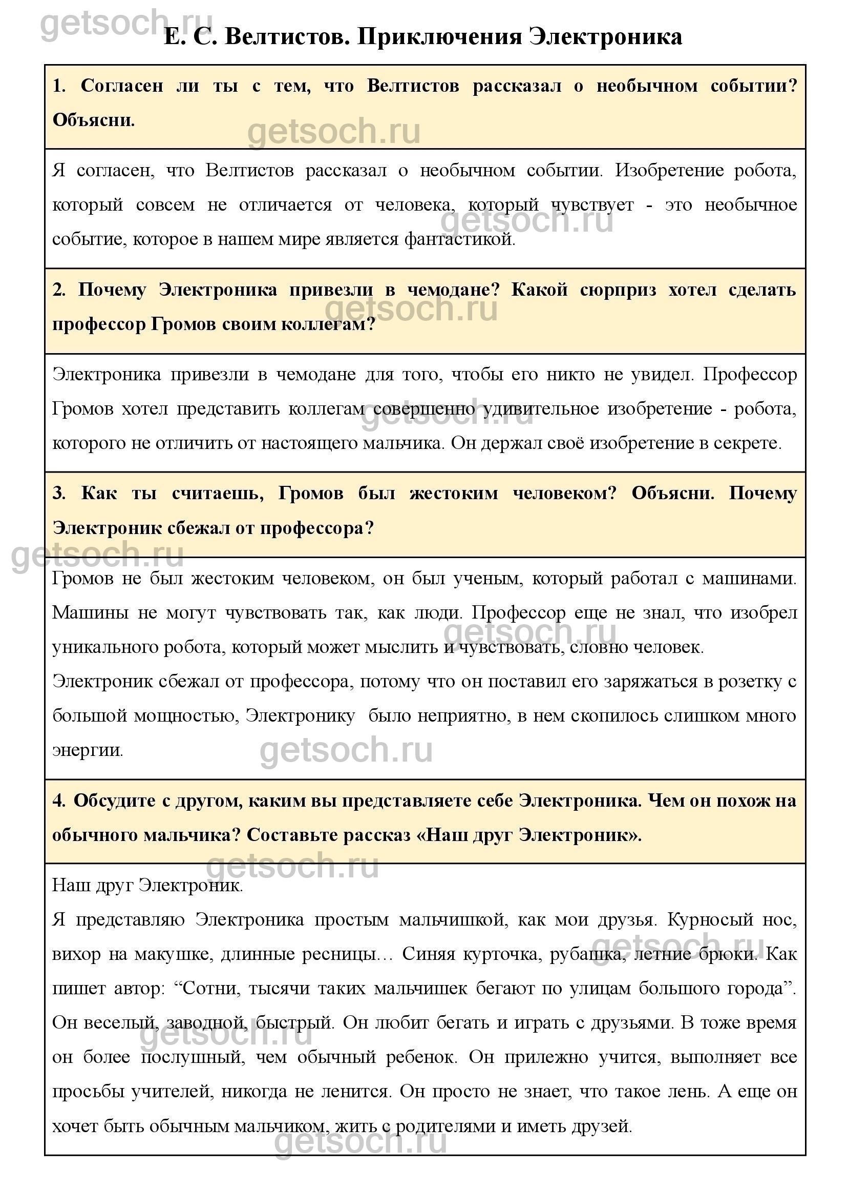 Обсудите с другом, каким вы представляете себе Электроника. Чем он похож на обычного мальчика? Составьте рассказ «Наш друг Электроник».