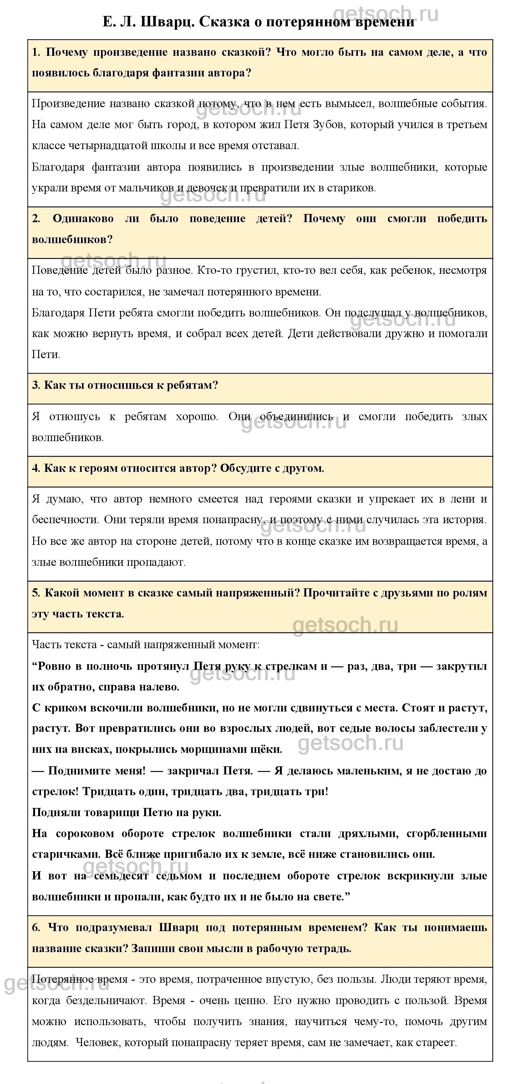 Что подразумевал Шварц под потерянным временем? Как ты понимаешь название сказки? Запиши свои мысли в рабочую тетрадь.